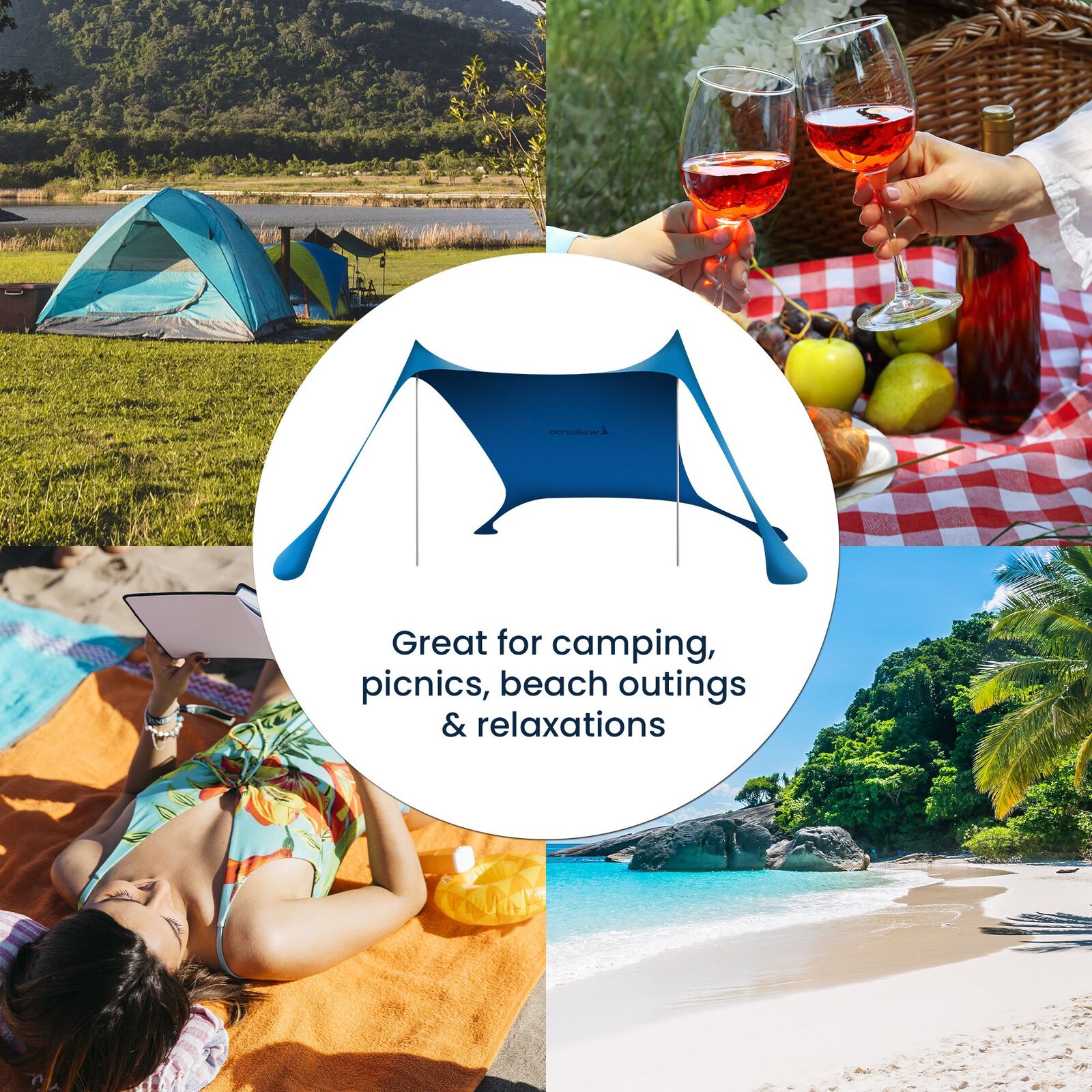 Seeking shade from the blazing sun at the beach? Dive into the cool haven of the Wallaroo Beach Tent! Crafted for sun-soaked adventures, this anti-UV shade offers 50+ UPF (ultraviolet protection factor), shielding you from harmful rays while offering a breezy retreat.