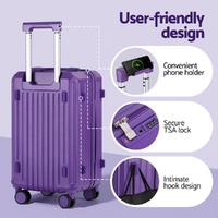 Wanderlite Trunk Luggage Set makes packing a dream, not a chore. With its innovative 3/7 split compartment, you'll conquer clutter, while phone holder and intimate side hook keep you more convenient on the go. Glide effortlessly with reinforced 360�� spinner wheels and rest easy knowing your gear is safe thanks to the TSA lock and durable ABS shell. Plus, a hidden wet compartment keeps everything fresh.