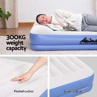 Introducing our Weisshorn air mattress, featuring a flocked sleeping surface for added comfort. Inflates in just 4 minutes with a durable pre-tested vinyl construction and seamless design. Equipped with a built-in pump for effortless operation, suitable for indoor and outdoor use.