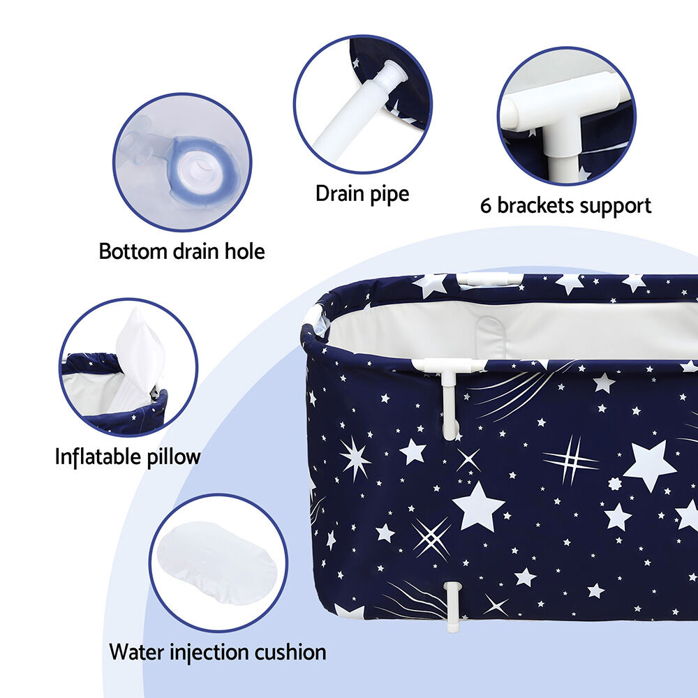 Introducing the amazing Weisshorn Foldable Bathtub! This innovative design has an extra-large capacity and features a 5-layer material insulation to keep both temperature and water locked in. With 6 support brackets and a drain pipe, this bathtub is easy to set up and use anywhere, indoors or outdoors. It also includes an inflatable pillow, an air pump and a water injection cushion for added comfort. Perfect for both hot and cold baths, this foldable bathtub is the ultimate in relaxation and convenience.