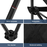 The Weisshorn Folding Camping Moon Chair is designed to deliver comfort, durability and convenience wherever you go. Featuring a spacious curved seat, it provides excellent ergonomic support and a cosy feel, making long sitting sessions far more relaxing than ordinary folding chairs. Built with a reinforced iron frame, the chair ensures stable seating and supports up to 120kg, giving you reliable strength for a wide range of users. The seat is made from water-resistant and breathable 600D Oxford fabric, combining toughness with lasting comfort and helping resist light outdoor moisture while allowing airflow. Practical details make this moon chair even more versatile: it includes a built-in drink holder so your beverage is always within easy reach, and it comes with a convenient carry bag for quick storage and transport. Despite its sturdy construction, the chair is lightweight, folds down compactly, and requires no assembly, which means you can set it up or pack it away in seconds. Whether you are heading out for camping, fishing, beach days, picnics, festivals or simply relaxing in the backyard, the Weisshorn Moon Chair is a reliable companion that balances comfort, strength and practicality, ensuring you always have a comfortable place to sit.