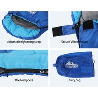 Dont let the chill ruin your next family holiday. Your kids can have a comfortable nights sleep in any weather with a Weisshorn 172cm Childrens Thermal Sleeping Bag. Suitable for temperatures between -5 and 20 degrees, the sleeping bag will keep your children cosy during long, cool nights. Filled with 250gsm hollow fibre filling and lined with soft polyester pongee fabric, the sleeping bag is soft, lightweight and water-resistant. It features an adjustable tightening strap, a secure Velcro closure, double-opening zippers and a convenient carry bag. The sleeping bag can also be used as a play or picnic mat when you need a soft surface for outdoor fun. The sleeping bag has a bright, colourful design that your kids will love. When youre out camping with the family and need more warmth, rug up with a Weisshorn Childrens Thermal Sleeping Bag.