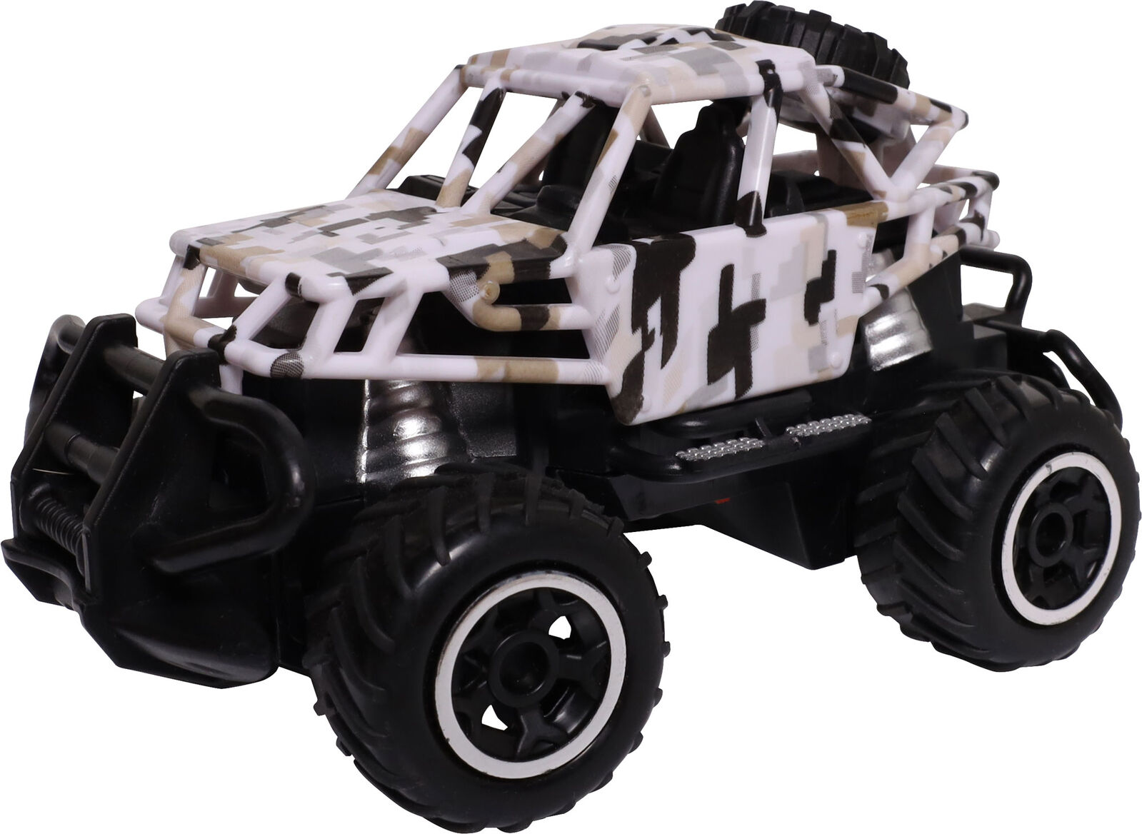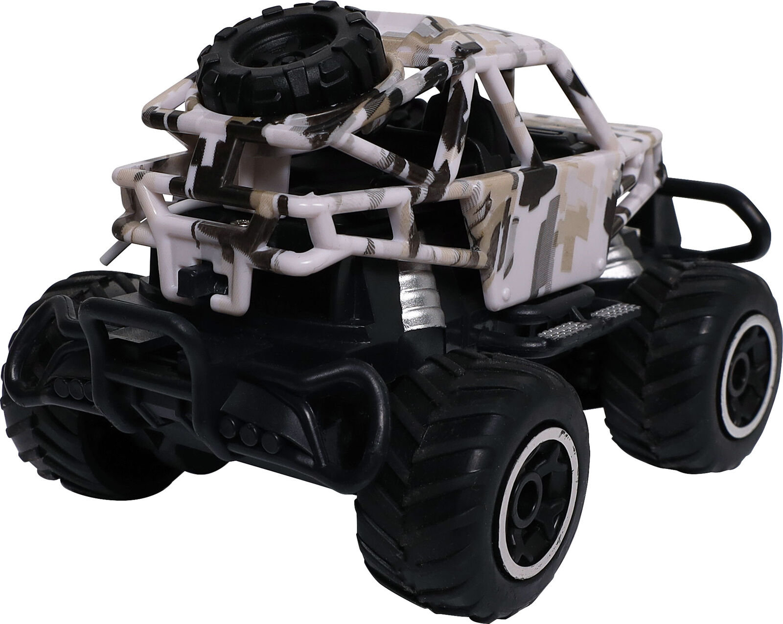 Barrel up rough terrain with this remote control dune buggy thats perfect for small kids and big kids! 1:43 scale. Great fun for all ages. A great gift idea for any adventurer. Make this an addition to any holiday or camping trip to keep the kids entertained and thanks to the all terrain usability you can drive this buggy on a variety of surfaces. Requires 2xAA batteries for controller and 2xAA batteries for the vehicle.