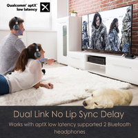 Simultaneously stream audio to 2 headphones with zero lip-sync delay while watching TV, movies or gaming. - SUPPORTS APTX HD CODEC