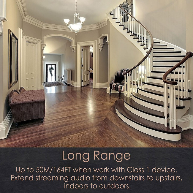 Utilizing Class 1 Bluetooth technology and an optimized antenna design, the Avantree Oasis can achieve a range of up to 164ft (50m) line-of-sight in open air and up to 50-70ft (20-30m) indoors. - DUAL-LINK aptX LOW LATENCY