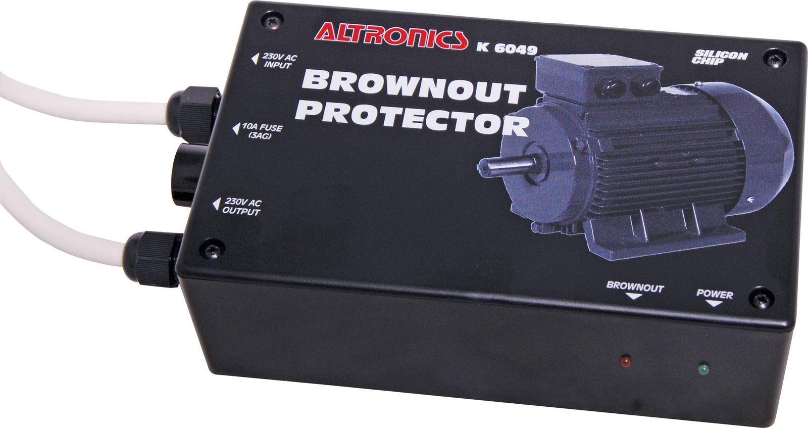 (Silicon Chip Magazine July ‘16) The Brownout Protector is designed to protect single-phase induction motors in fridges, freezers, pumps etc from burnout if they attempt to start during a brownout. It will switch off the power if the voltage falls below a set threshold.