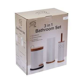 Create a natural and stylish look in your bathroom with the Eco Basics 3 Piece Bathroom Set. The 3 essential products for any bathroom are included in this pack and they mix natural and industrial elements to create a modern yet natural look in your bathroom.