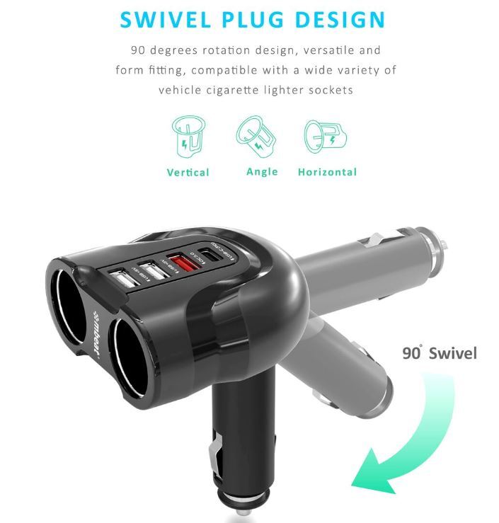 90 degrees rotation design, versatile and form fitting, compatible with a wide variety of vehicle cigarette lighter sockets.