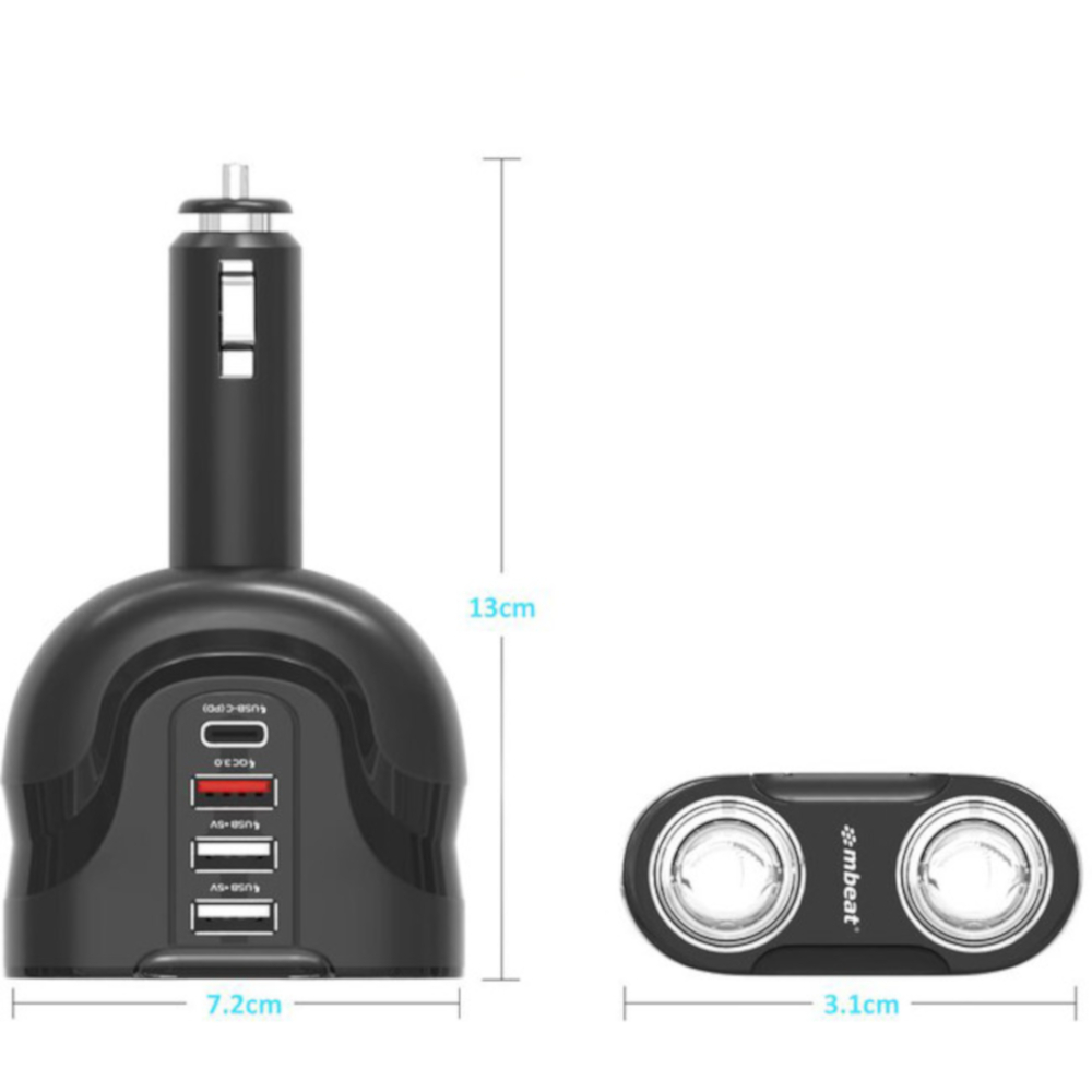mbeat® Gorilla Power Four Port USB-C PD & QC3.0 Car Charger with Cigar Lighter Splitter features built-in over heat Package Weight: 120g