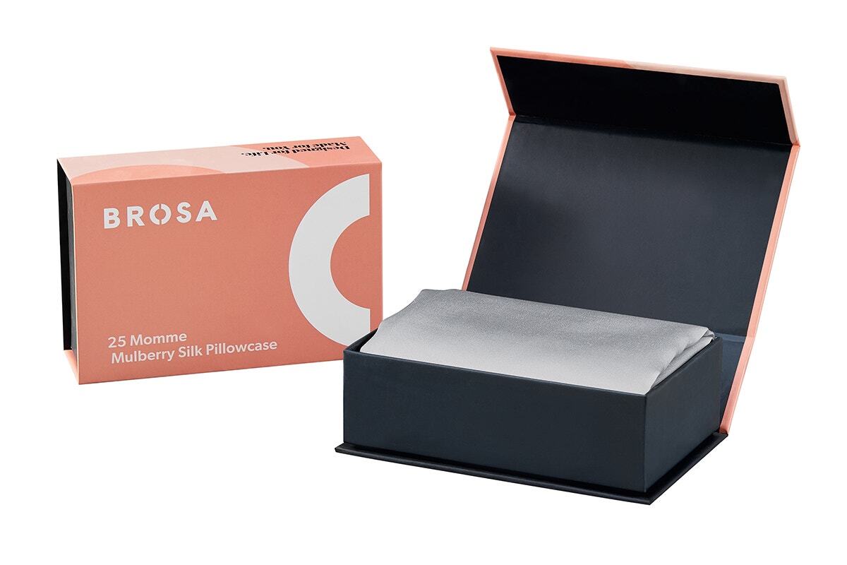 Embrace nightly indulgence and transformative beauty sleep with the Brosa 25 Momme Mulberry Silk Pillowcase, where luxury meets skin and hair care.