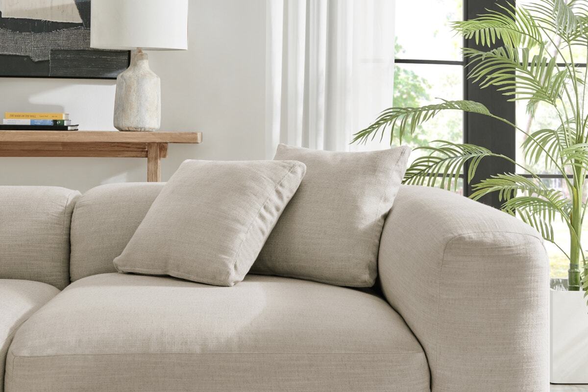 With their neutral Linen Sand tone and high-quality fabric, these pillows blend seamlessly into existing décor, providing a subtle yet impactful design element. They are versatile enough to enhance the look of your living room, bedroom or any area that needs a touch of comfort and elegance.