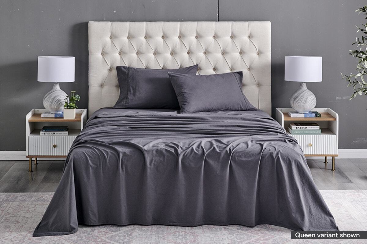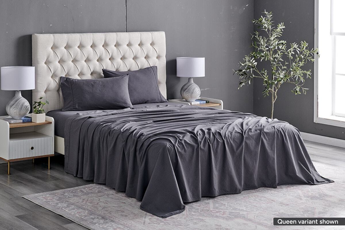 Brosa Washed Linen Cotton Bed Sheet Set (Charcoal,