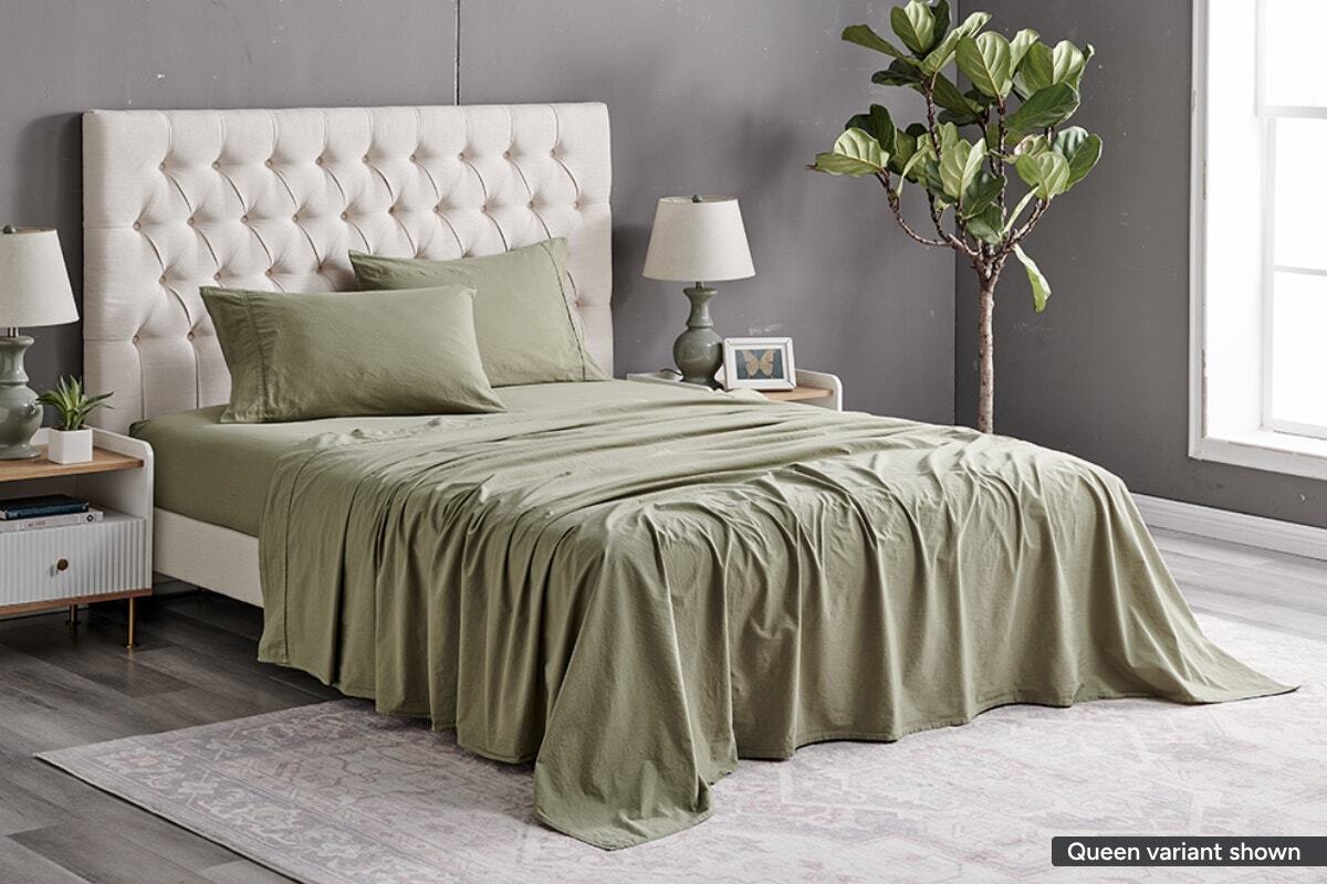 The Brosa Sydney Stonewash Cotton Bed Sheet Set is a luxurious addition to any bedroom. Made with high-quality stonewashed cotton, these sheets are soft to touch with great breathability for a good night’s sleep.