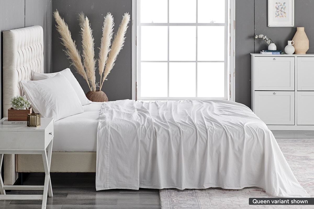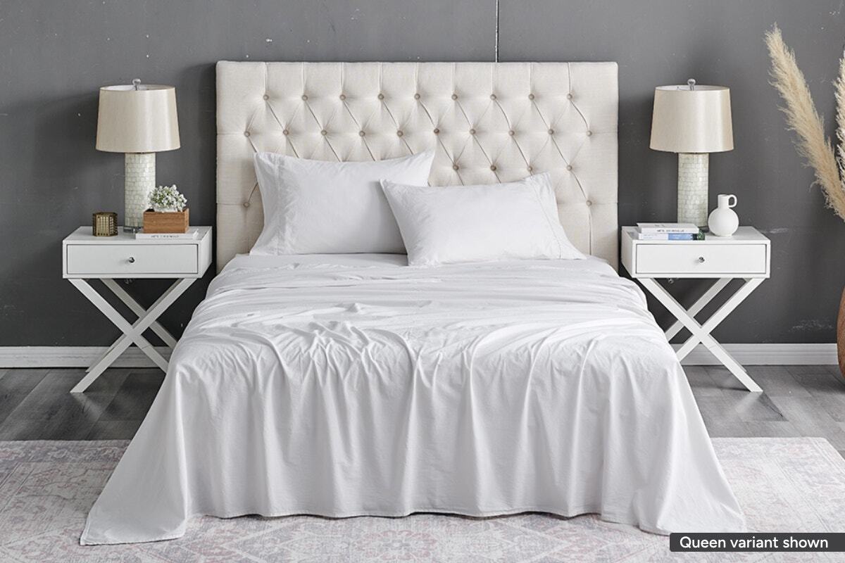Brosa Washed Linen Cotton Bed Sheet Set (White, Do