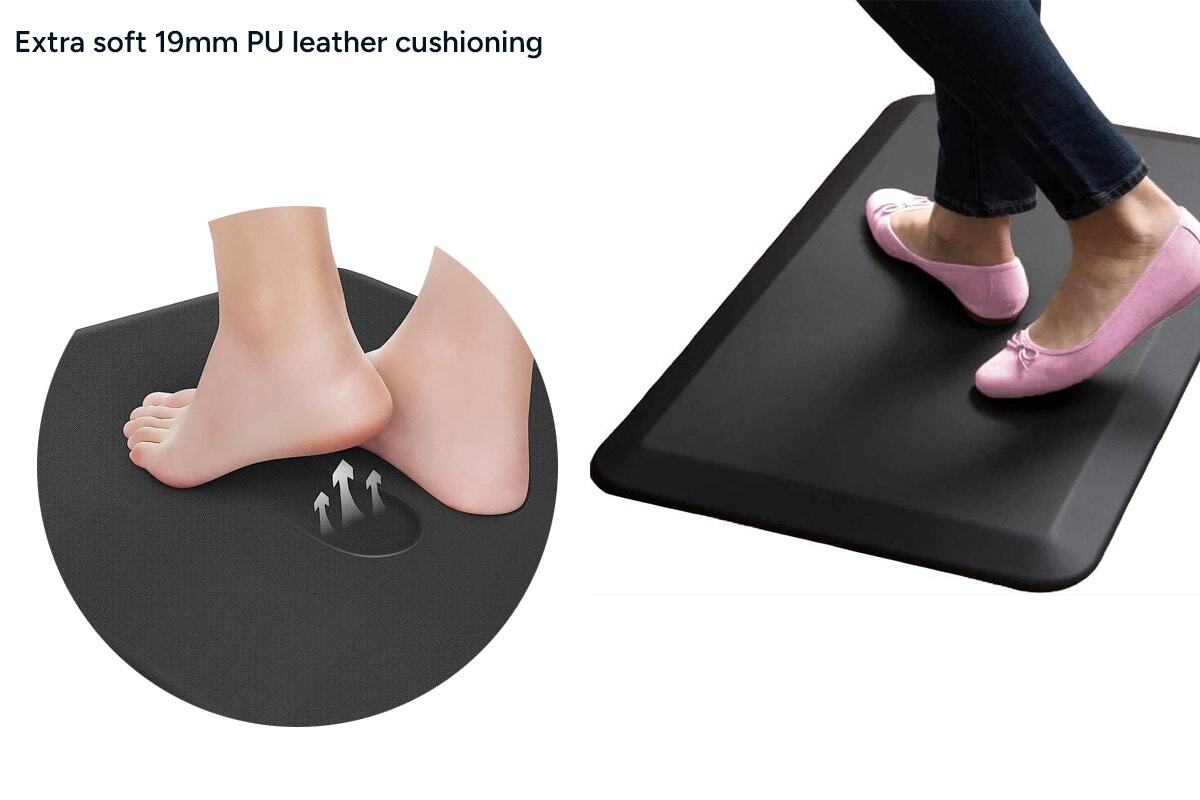 Specially designed for those who use standing desks or spend long hours on their feet, this cushioning mat ensures comfort is never compromised, making your day more enjoyable and productive. The 19mm thick PU memory foam provides vital support and alleviation for your joints during prolonged standing.