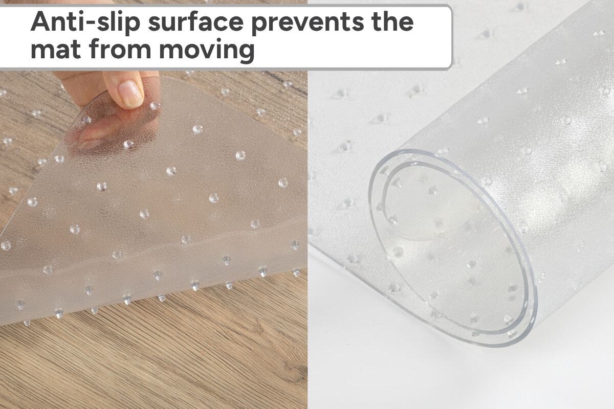 Crafted with a sleek, transparent design, this mat effortlessly blends in with any decor. The water-resistant and robust construction offers unbeatable defence against spills and wear, ensuring it retains its crystal-clear elegance for years.
