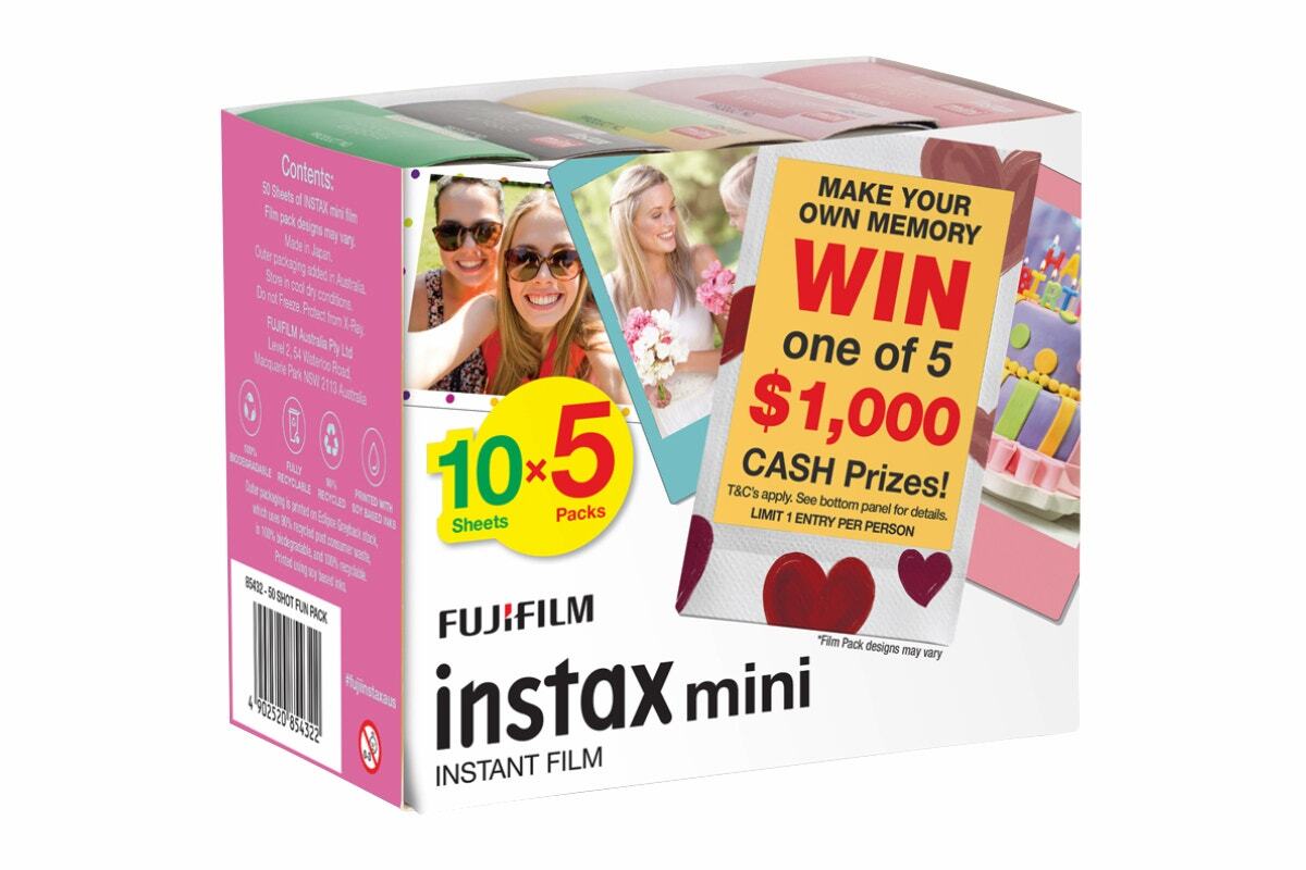 Elevate your instant photography with the pack of 50 Fujifilm Instax Mini Novelty Film, offering a playful twist with themed designs to infuse personality and charm into every photo. Perfect for Instax enthusiasts seeking creativity in their snapshots.