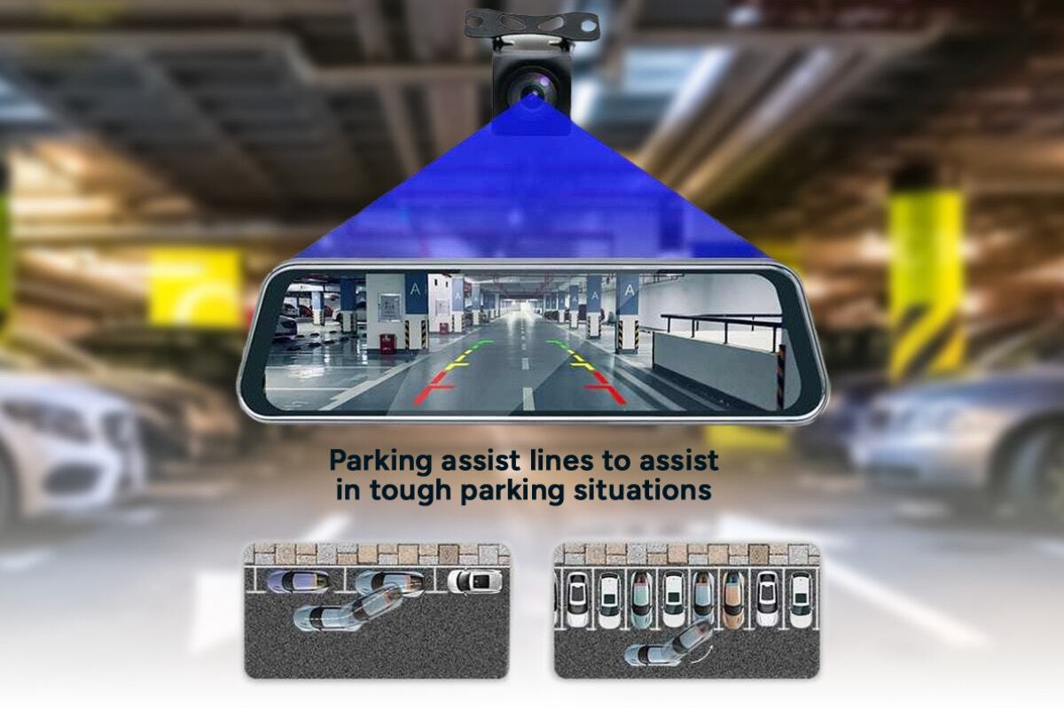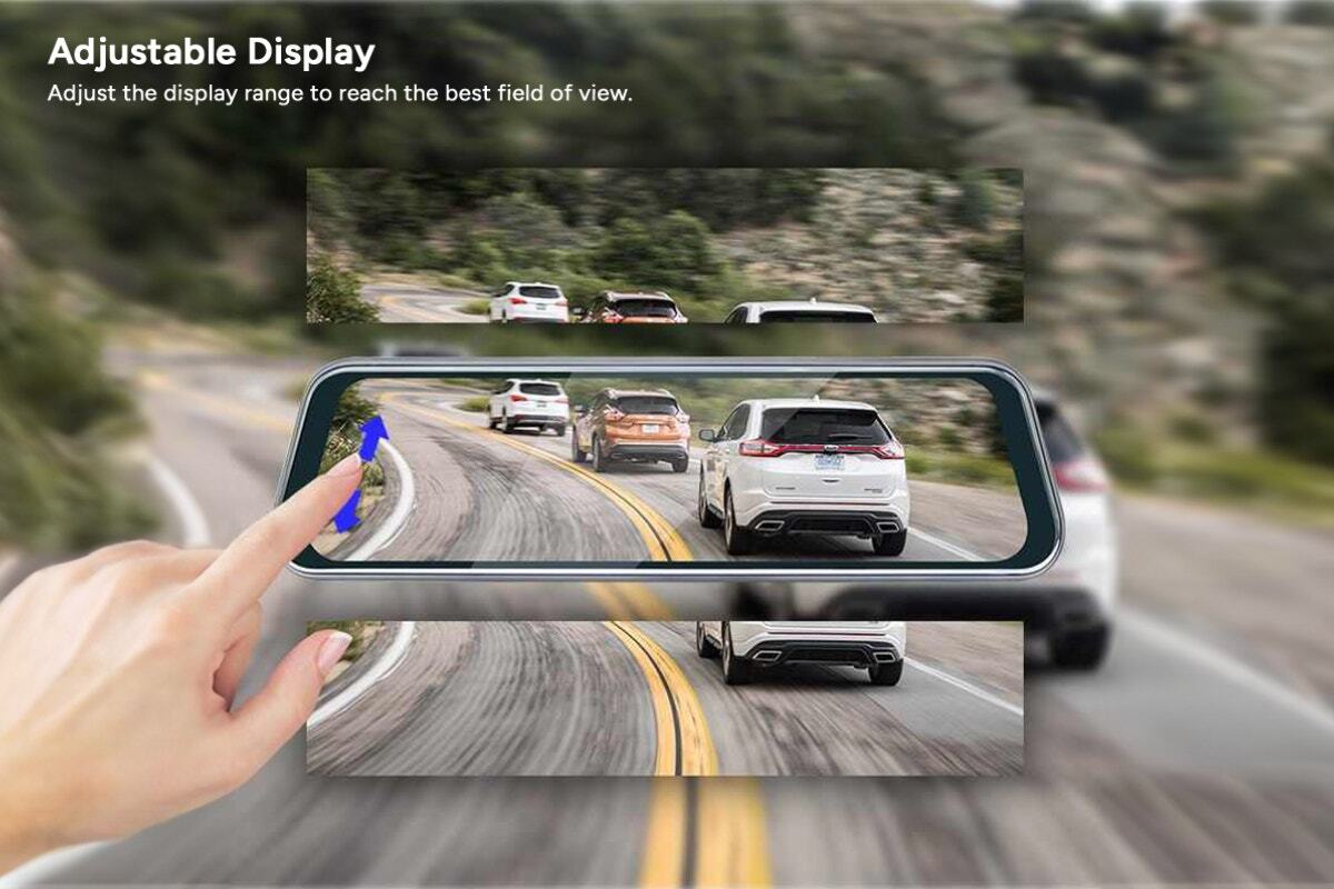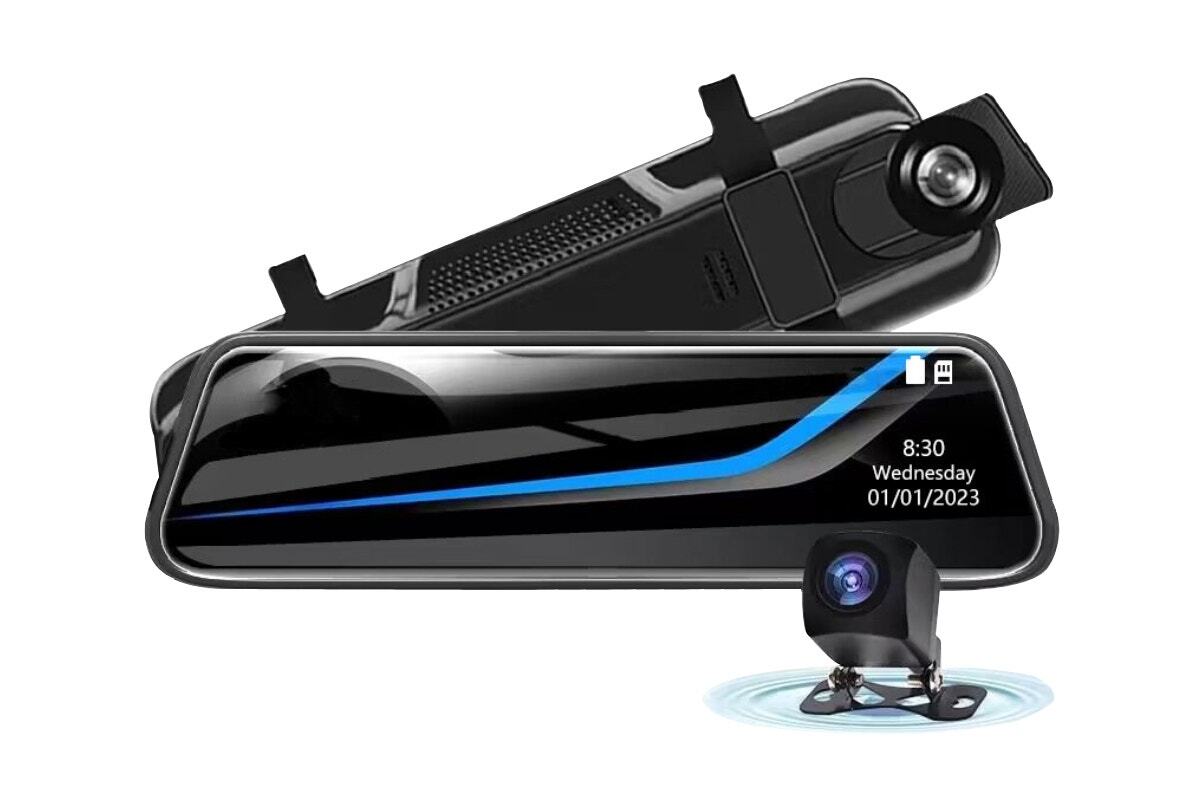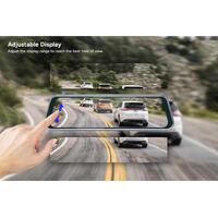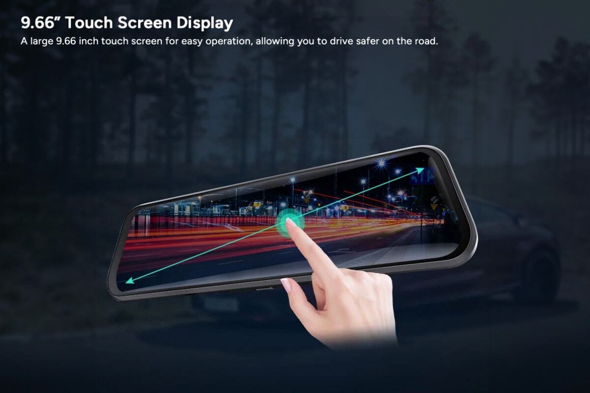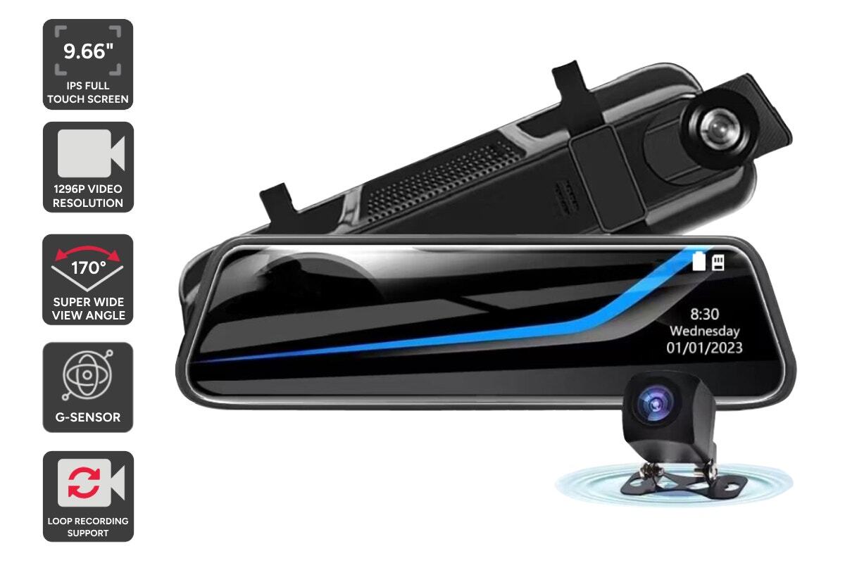 Record footage while driving, and back up your claim in the event of an accident. This smart and compact dual dash camera features 1296p front and 720p rear camera resolution, with a large 9.66” full touch screen and super night vision to make sure all events on the road are captured in detailed clarity.