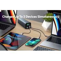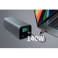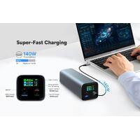 Juggling devices? No problem. With 2 USB-C ports and 1 USB-A port, this power bank transforms downtime into productive charging sessions, ensuring your phone, tablet, and laptop are all swiftly powered up together. The 140W output means rapid charging that keeps pace with your demanding lifestyle.