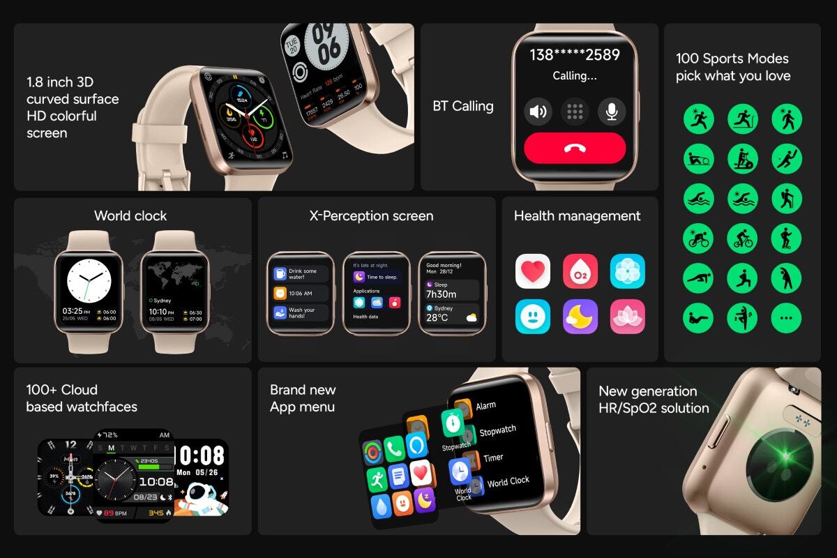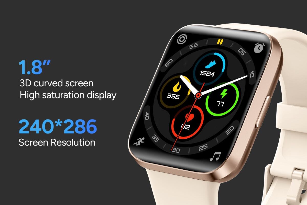 This watch features an impressive 1.8” 3D curved screen with a highly saturated display, giving you crystal clear visuals and vibrant colours. With a minimalist square design, this smartwatch lends effortless cool and is perfect for everyday use.