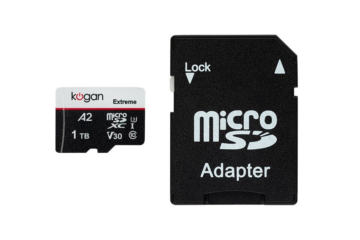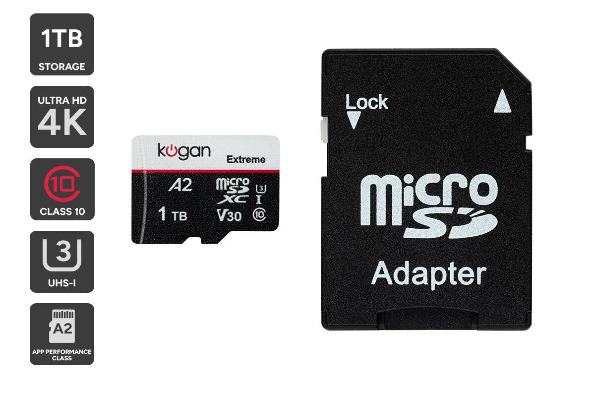 Suitable for high-quality video recording and photo capturing, the Kogan Extreme 1TB SDXC A2 V30 Micro SD Card is the perfect travelling companion. This SD card rapidly writes and transfers files with a 100MB/s reading speed and 90MB/s writing speed.