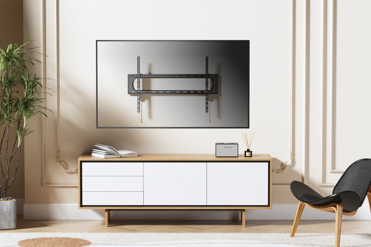 Free up space in your living room thanks to this sleek low-profile TV wall mount, and enjoy the peace of mind that comes with a securely mounted TV while adding a touch of sophistication to your living space.
