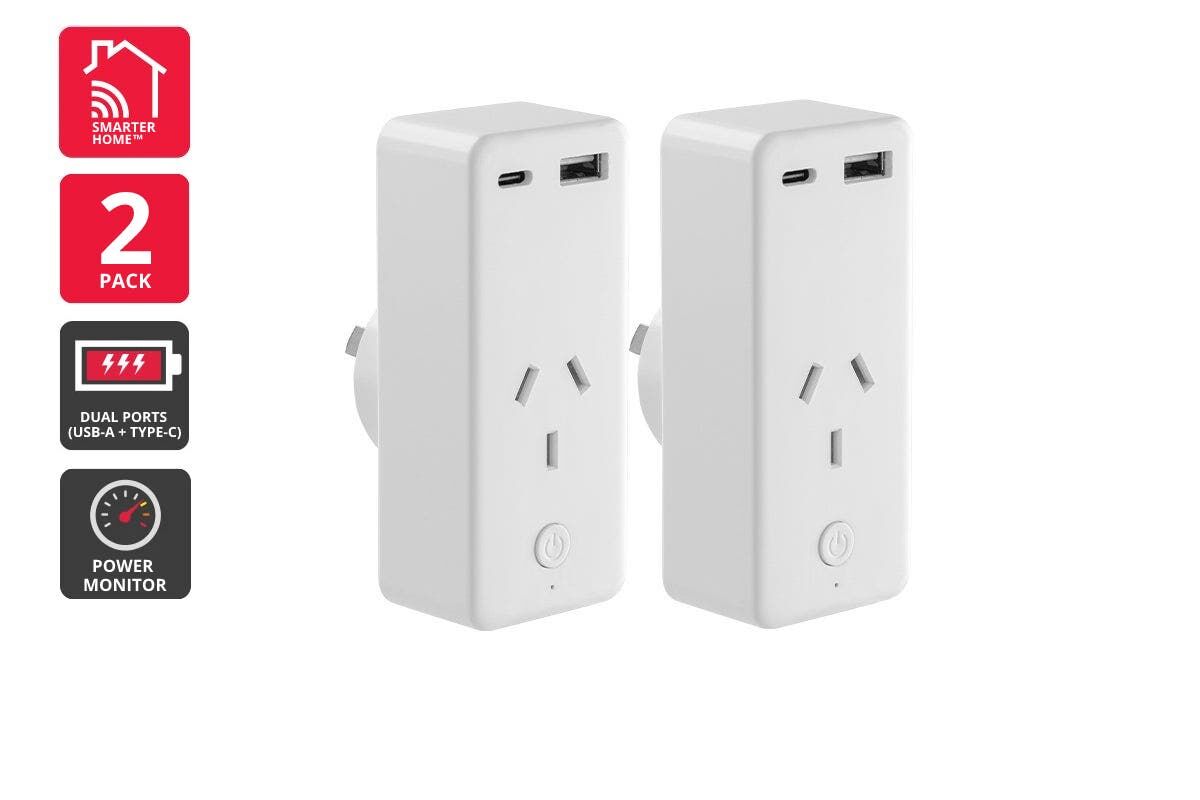 Stay in control The Kogan SmarterHome™ Smart Plug With Energy Meter & 5V 2A USB A&C; Ports (2 Pack) puts you in control of your power usage with the ability to monitor energy consumption, set timers and on/off schedules and make the most of the USB ports for phone charging and other devices.