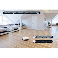 This robot vacuum cleaner features UV sterilisation and a mop to help you keep carpets and tiles clean all at the touch of a button or voice control. The vacuum has a built-in laser navigation system and smart infrared sensors that intelligently scan the surrounding environment and map the room to provide more efficient vacuuming, mopping and sterilisation. You can use the SmarterHome™ mobile app to easily set schedules, check the battery, switch modes, see where the vacuum has cleaned, and create a scene to vacuum before you get home from work. The vacuum is also compatible with Google Home and Amazon Alexa with voice control or compatible apps to get cleaning. Additionally, the vacuum is equipped with UV lighting that effectively eliminates 99.99% of germs, bacteria and viruses, and has a high-precision laser that generates and saves the floor plan of your home.