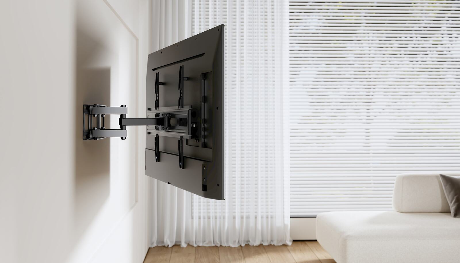 Experience the freedom to swivel and tilt your TV to meet your specific viewing needs. With a range of ±60° swivel and +3°/-15° tilt, the Kogan Full Motion Wall Mount lets you adjust your screen to reduce glare and enhance comfort, making every viewing experience feel like a premiere.