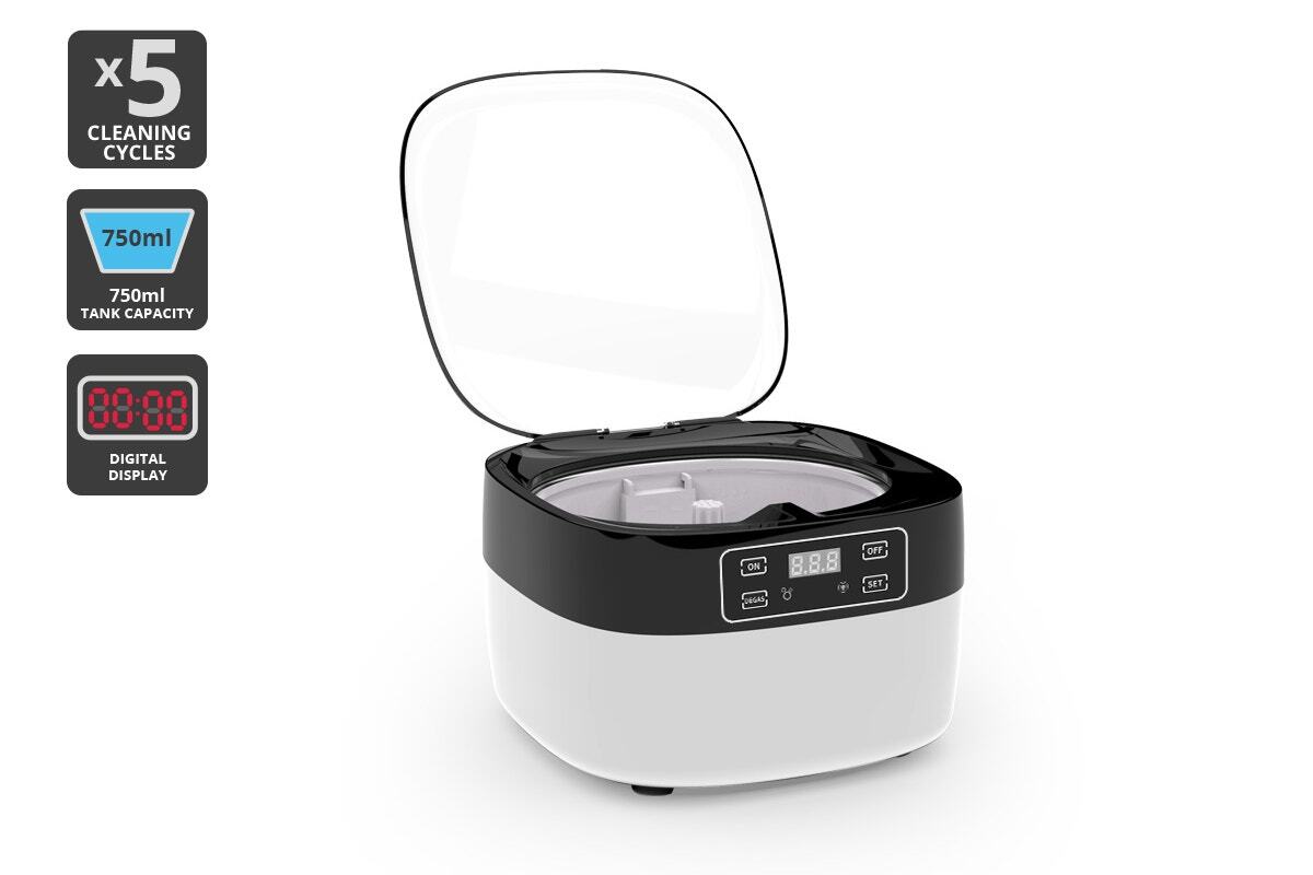 Whether you want to get rid of the fingerprints on your glasses, or residue off your makeup brushes, the 750ml stainless steel water tank is large enough to accommodate a wide range of items.