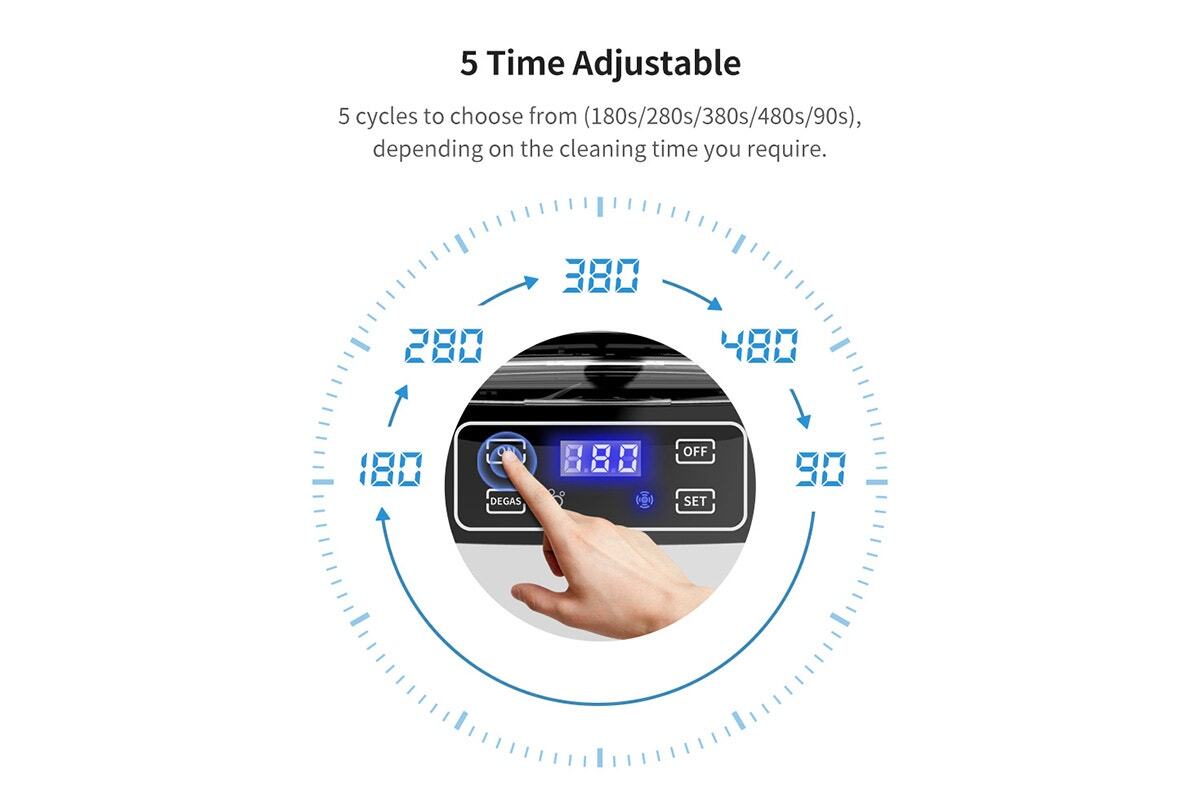 With 5 different cleaning cycles to choose from, this cleaner offers versatility for various materials and cleaning requirements. Quickly refresh your reading glasses with the 90s cleaning cycle, or give your favourite jewellery piece a deep clean with the 480s cycle.