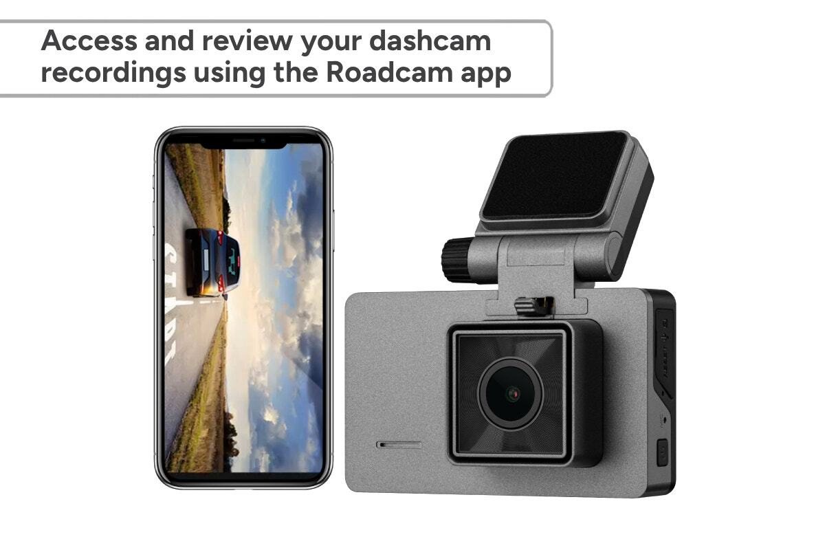 - Conveniently view and download footage directly to your smartphone with the RoadCam app