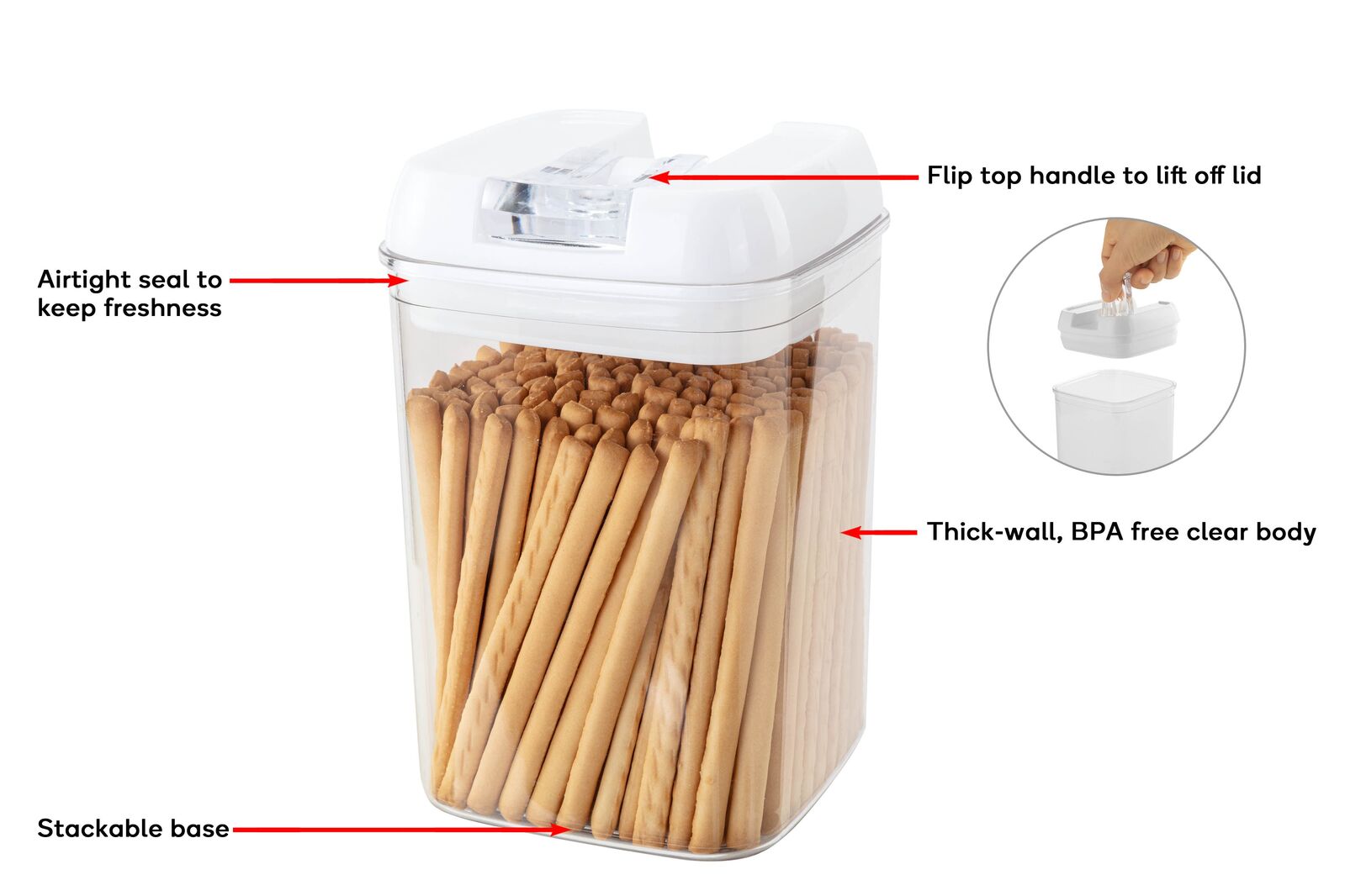 Keep your food fresh and your pantry organised with a set of five stackable, flip top storage containers that are BPA-free, dishwasher safe and sized to suit every need.