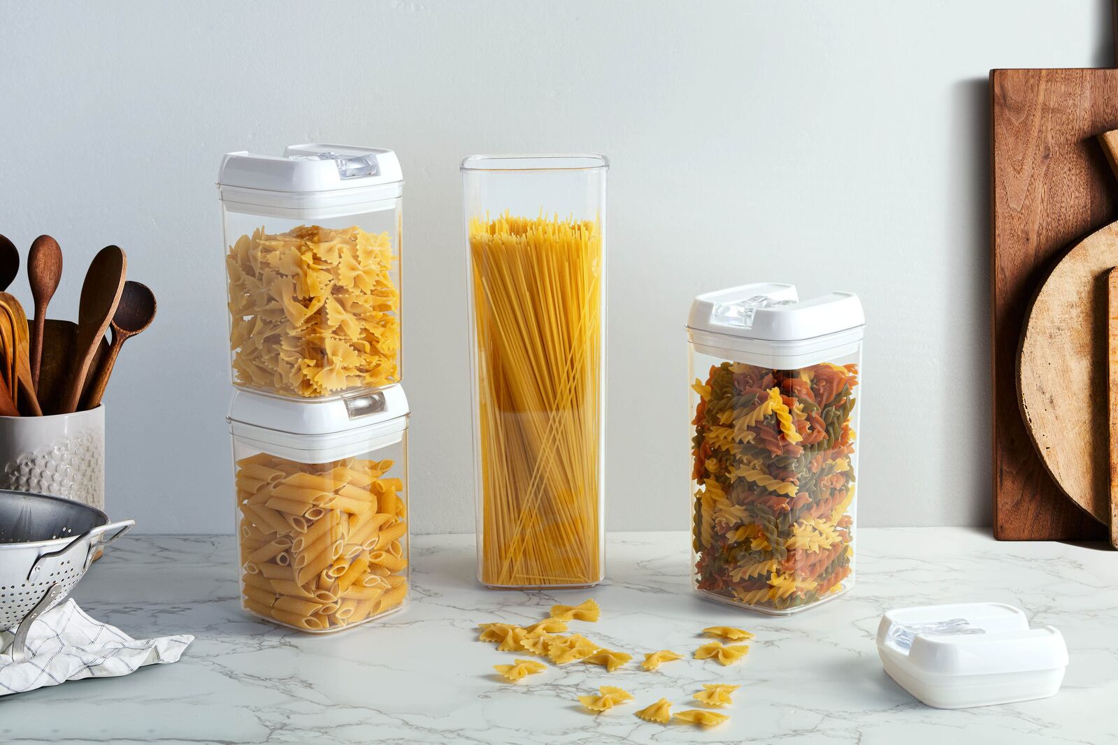 Perfect for pasta, herbs, porridge, rice, flour, coffee and so much more, these nine containers with airtight seals will come in handy for all kinds of non-perishables in the pantry and fresh food in the fridge.