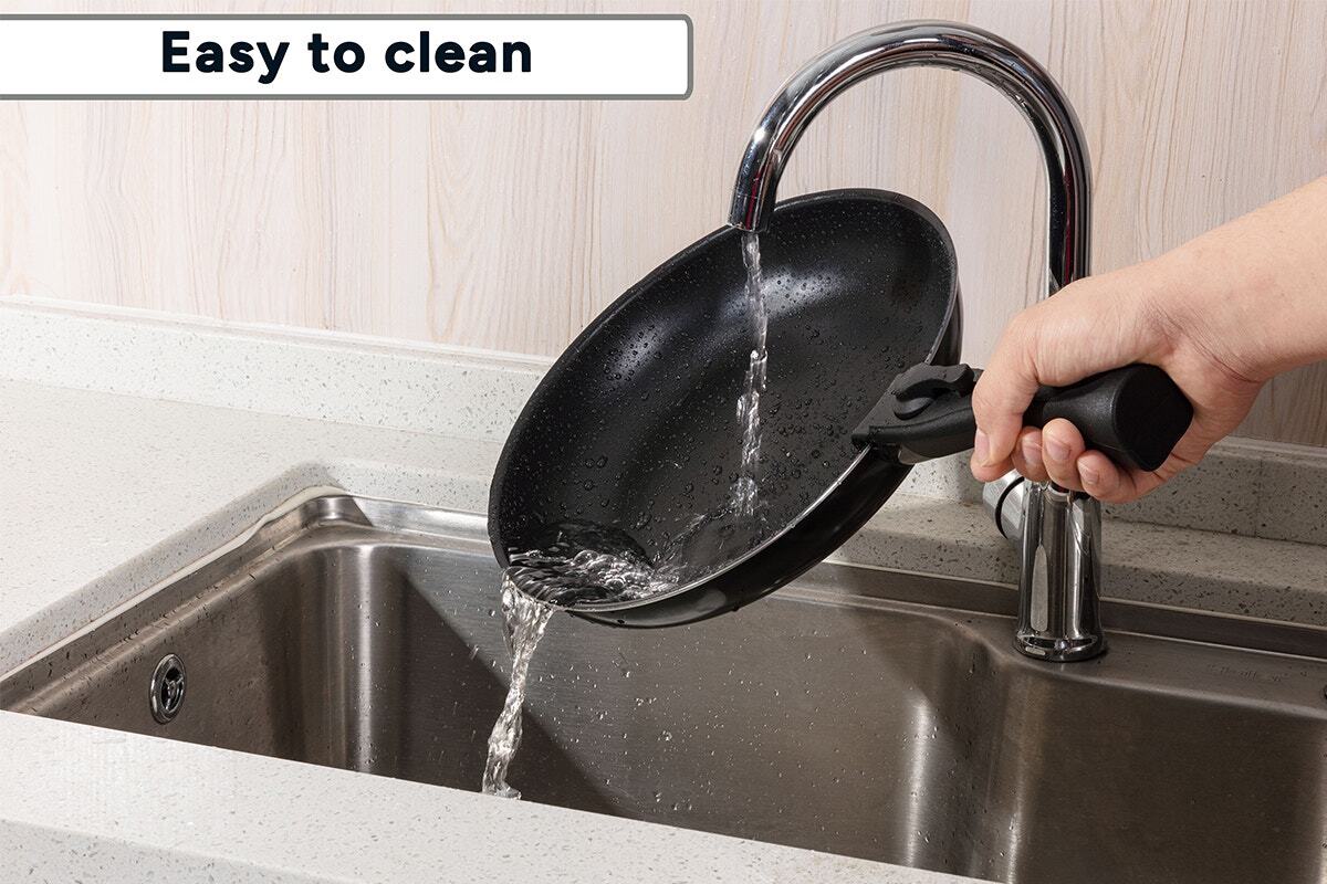 Designed with the modern home in mind, every piece in this cookware set is dishwasher safe, promising a swift and easy cleanup post-meal. This convenience means more time to enjoy your culinary creations and less time worrying about the aftermath. The non-stick surface further simplifies cleaning, ensuring that even the most stubborn foods can be wiped away without a fuss.