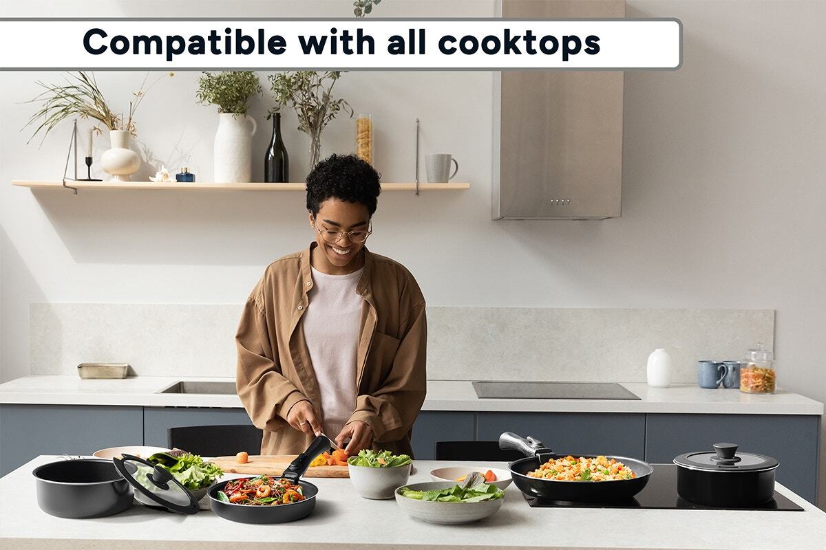 Discover the Ovela Moderno 6 Piece Non-Stick Induction Cookware Set is a fusion of sleek design and versatile functionality. Crafted for the modern kitchen, it promises effortless cooking on any stove type, easy cleanup and a stylish statement in black.