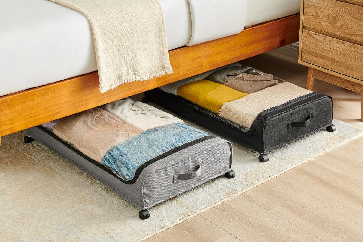 Make it easy to store and access items under your bed with the dual handles and whisper-quiet, lockable 360° and rotating wheels. Effortlessly slide the storage units in and out from under the bed, ensuring smooth movement without the need for heavy lifting or awkward positioning.