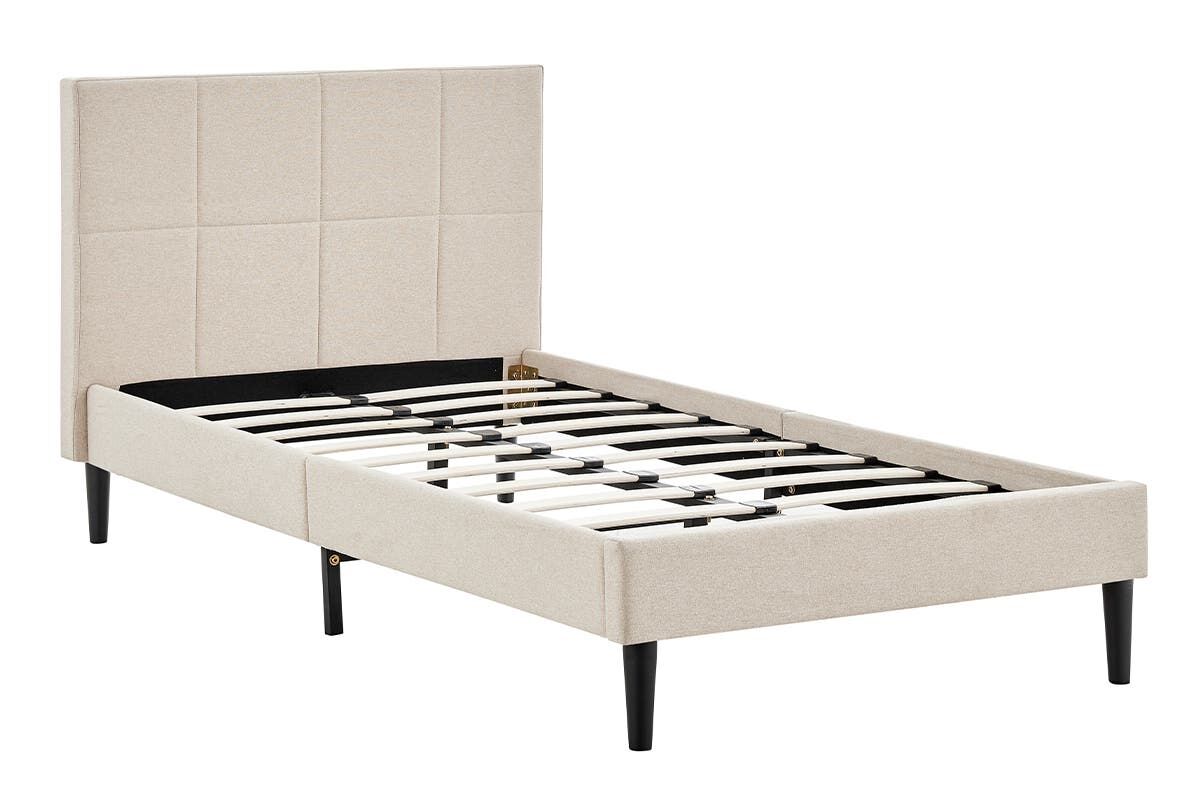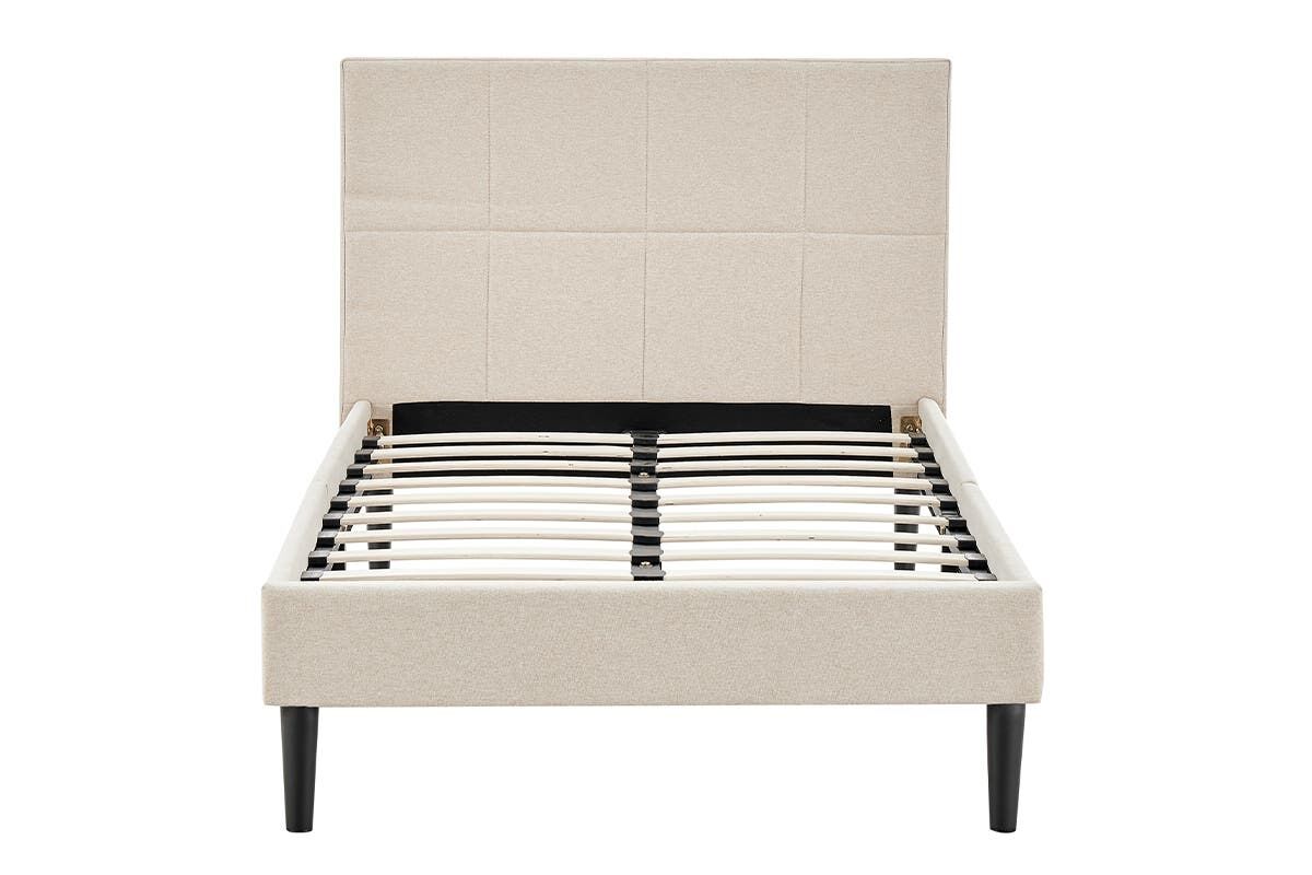 Contemporary and minimalist, the clean lines and soft textures of the simple fabric pattern of this bed frame elevates any bedroom decor.