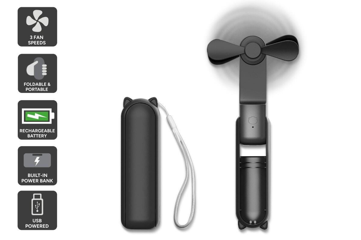 The long-lasting and rechargeable 1200mAh battery not only ensures a lasting breeze but also serves as a reliable power bank for your devices. Whether you’re navigating a busy commute or enjoying a day out, this mini fan-power bank combo is your reliable partner, keeping you cool while your devices stay charged and ready to conquer the day with you.