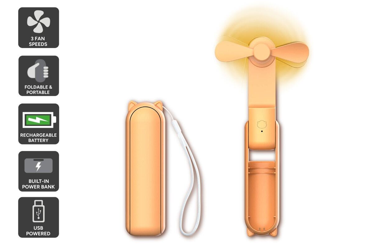 Stay cool and connected wherever you go with this 2-in-1 Portable USB Mini Fan and Power Bank – your compact solution for on-the-go cooling and charging. Boasting an impressive 8-hour battery life, 3 fan speeds, and a handy power bank, all in a sleek, foldable design.