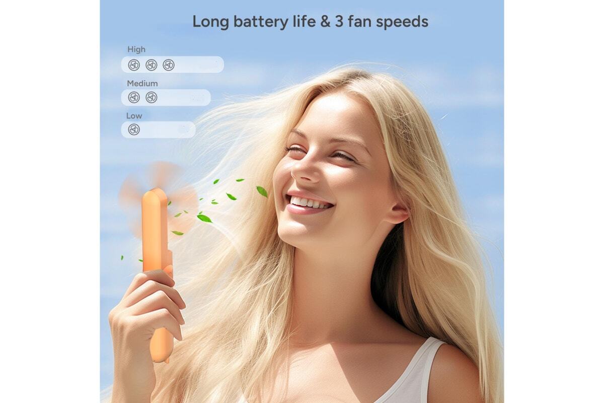 With 3 adjustable fan speeds, this mini fan caters to your individual needs for comfort. Whether you need a gentle airflow or a stronger wind, you have the control right at your fingertips. Its soft silicone blades and near-silent operation mean you can enjoy a refreshing airflow without any disruptive noise, making it perfect for use in quiet environments like offices or libraries