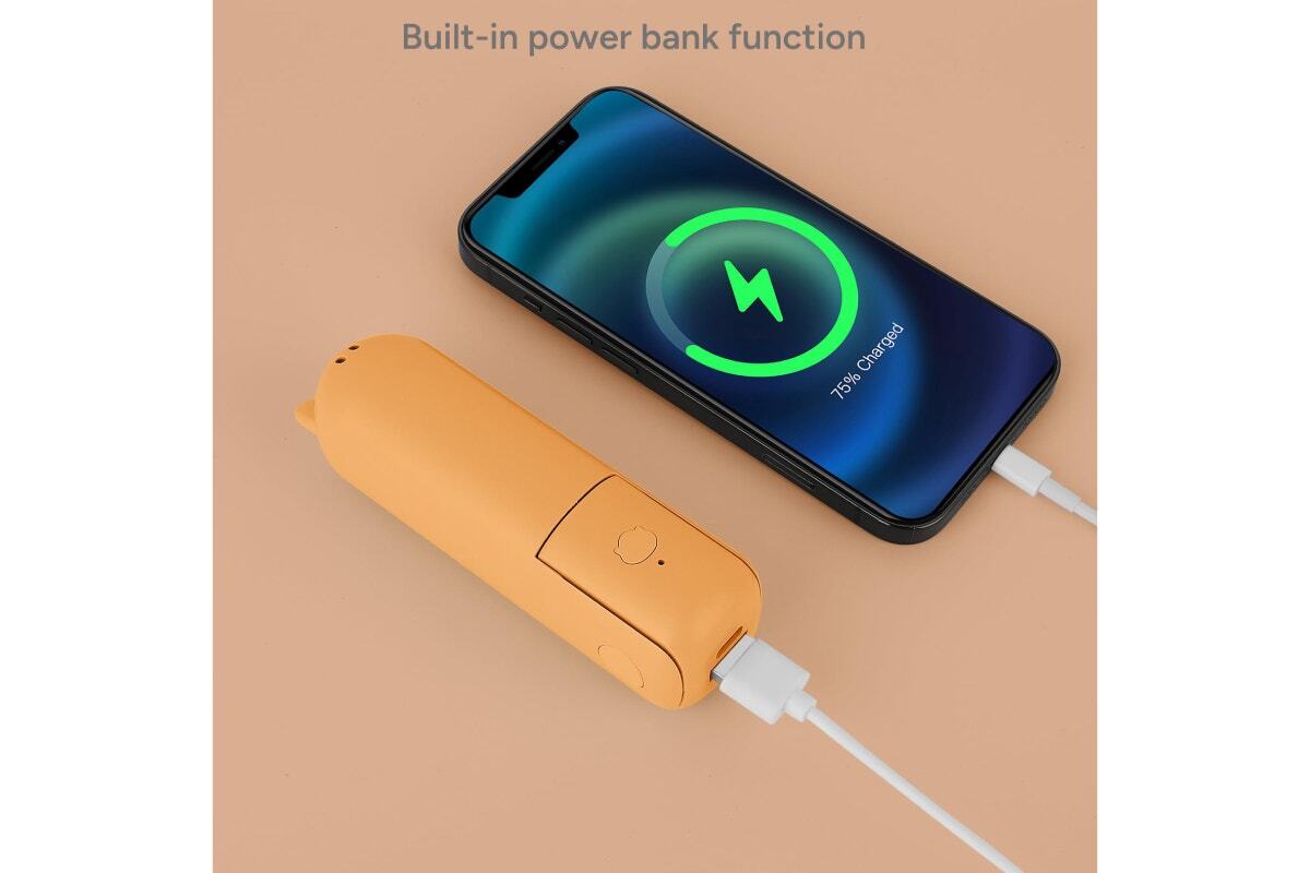 The long-lasting and rechargeable 1200mAh battery not only ensures a lasting breeze but also serves as a reliable power bank for your devices. Whether you’re navigating a busy commute or enjoying a day out, this mini fan-power bank combo is your reliable partner, keeping you cool while your devices stay charged and ready to conquer the day with you.