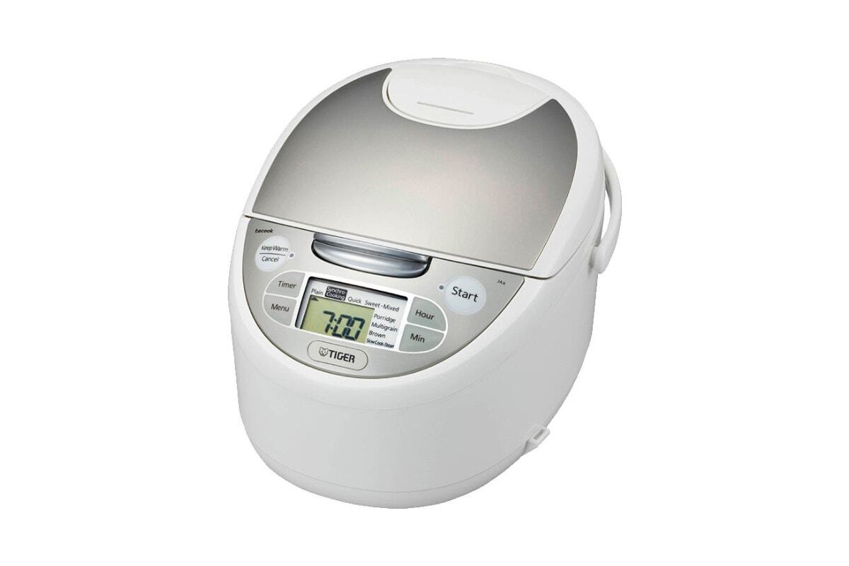 The black and thick spherical inner pot lets you cook rice perfectly. Tiger Mutli-functional Rice Cooker 5.5 Cup allows you to prepare 2 dishes simultaneously with the new “tacook” synchronised cooking function.