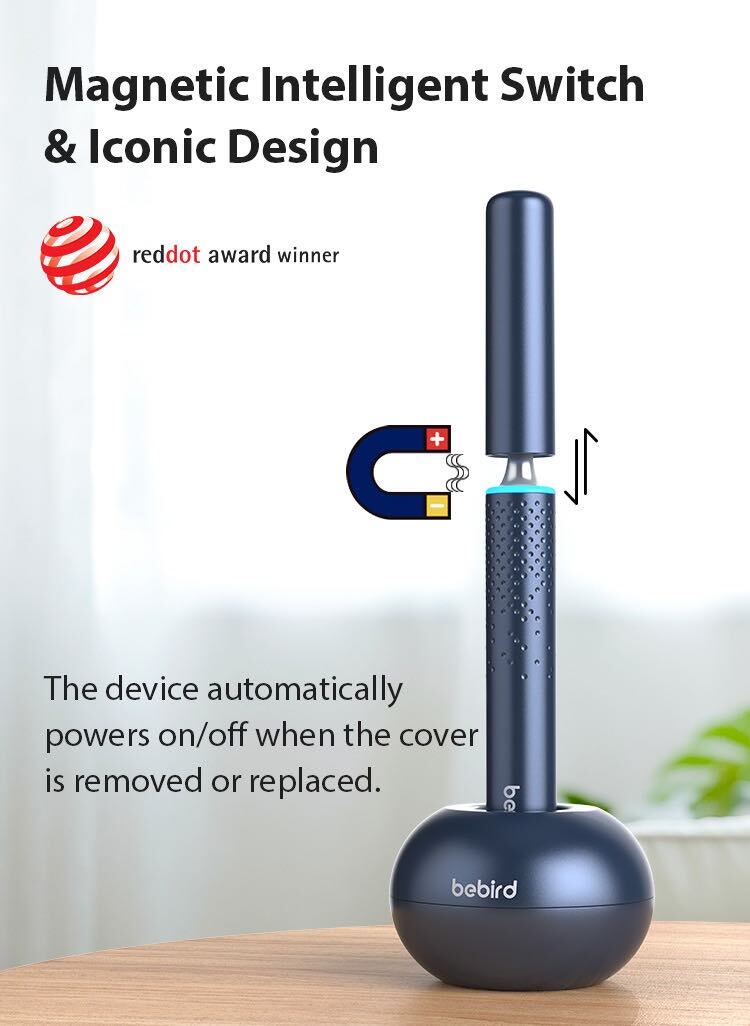 The Bebird M9S is crafted for convenience, featuring a smart magnetic switch that powers the device on and off automatically when the cover is removed or replaced. Its upright design and protective lens cover enhance usability while keeping the device clean and hygienic.
