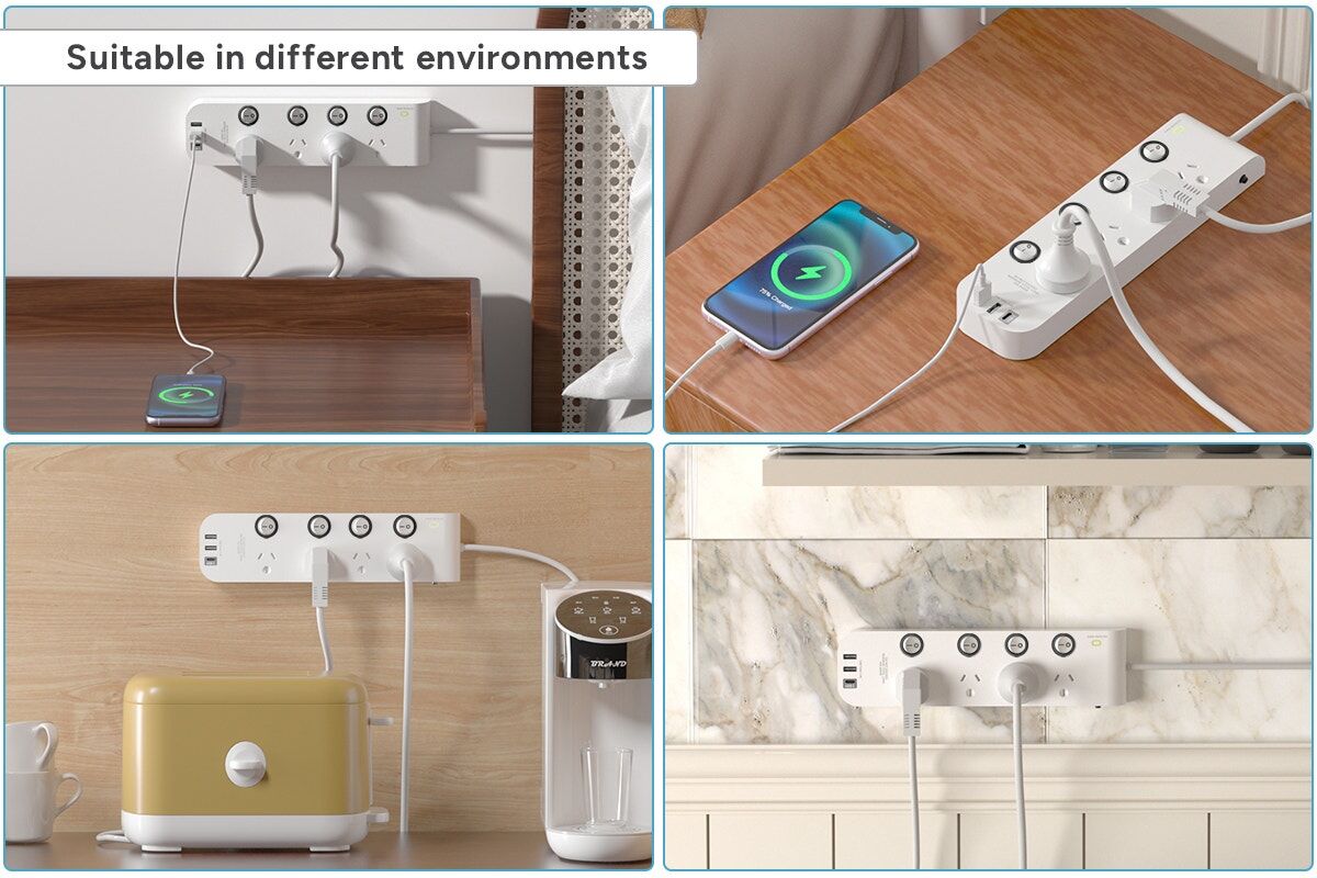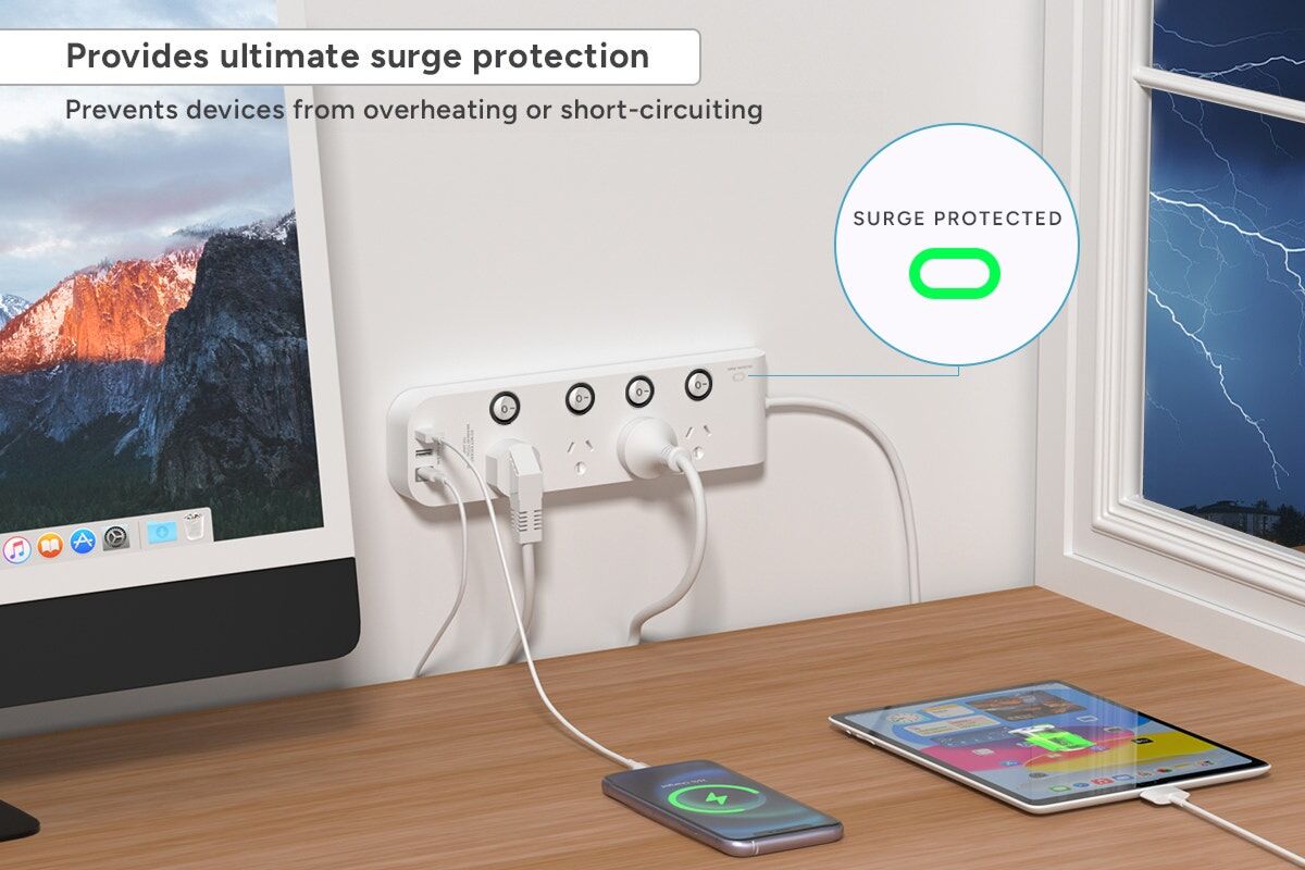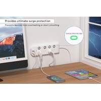 Safety is a priority with this powerboard, featuring built-in surge protection to ensure your connected devices are safeguarded against overheating and short circuits. This protection helps prolong the lifespan of your electronics by preventing damage caused by power surges. Additionally, the powerboard’s fireproof shell adds an extra layer of safety and durability, giving you peace of mind while using your devices.