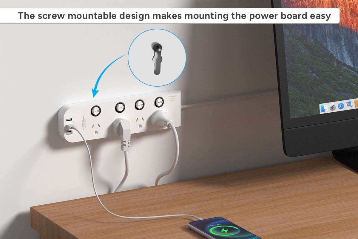Designed with versatility in mind, this powerboard can be laid flat or wall-mounted to suit various environments and setups. Whether you need a power solution for your desk, entertainment centre or workshop, this powerboard can be easily mounted to provide a tidy and efficient setup, making it a practical addition to wherever you need to power multiple devices.