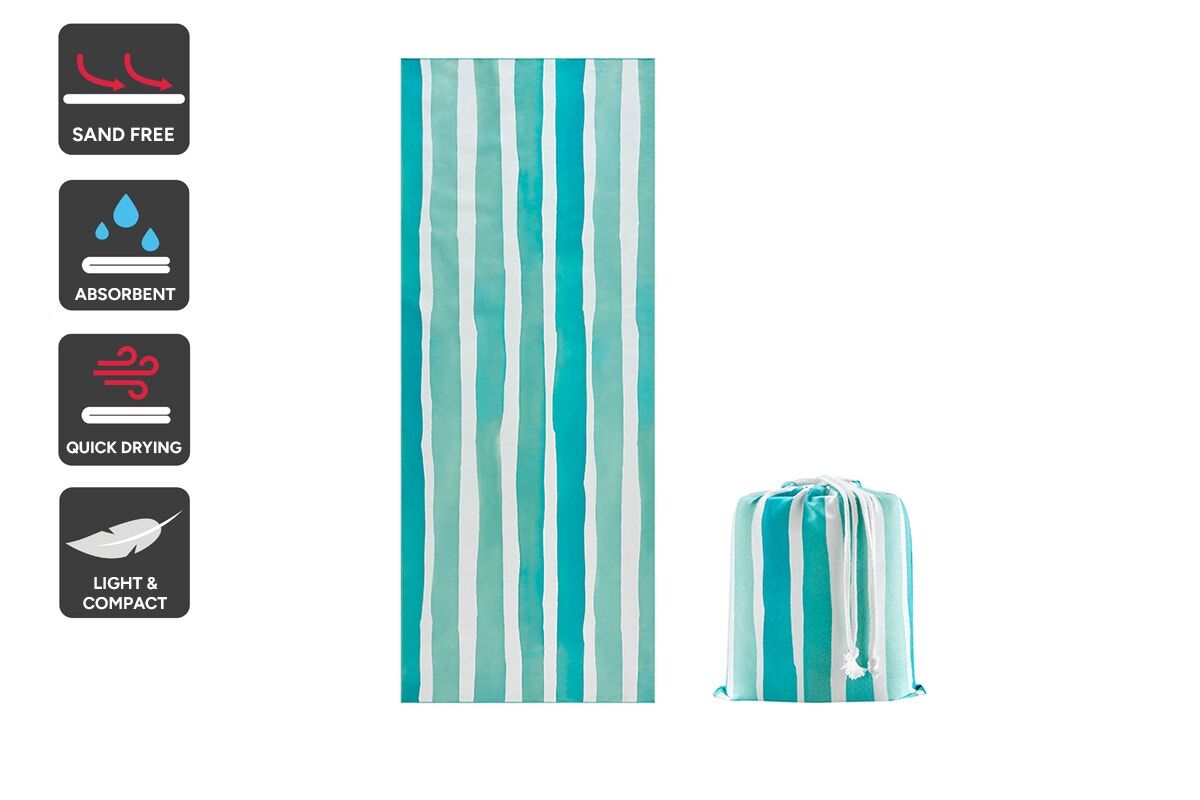 This towel features a striped watercolour double-sided design offering both functionality and style. Whether you’re lounging by the pool or soaking up the sun on the sand, this towel’s design will make you stand out.