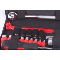 - 4 × 3/8” Drive Sockets: 10mm, 11mm, 13mm, 14mm