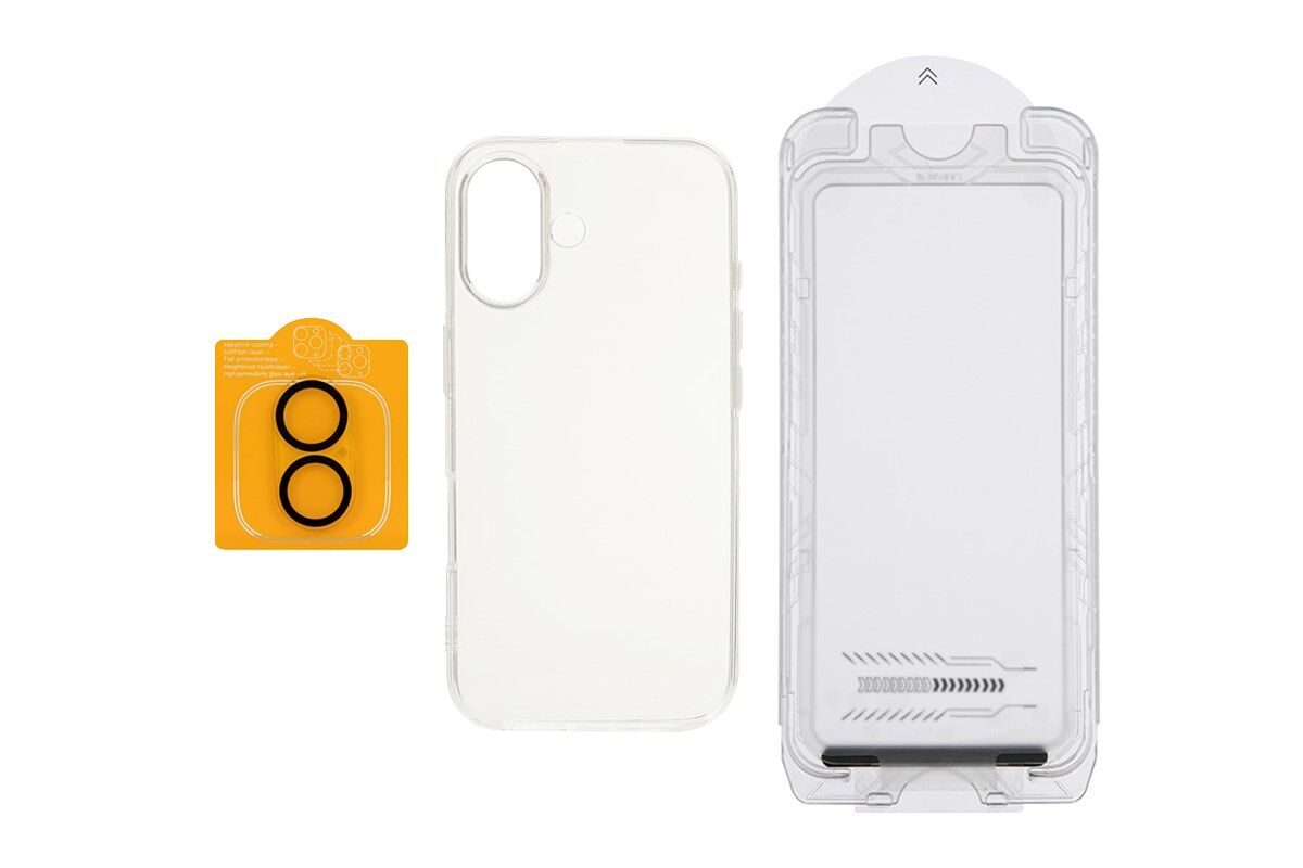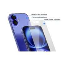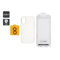 Keep your iPhone 16 safe from scratches, bumps and drops with this Ultimate 3-in-1 Protection Kit. Featuring a clear case, tempered glass screen protector and lens protector, this kit delivers all-around protection for your device.