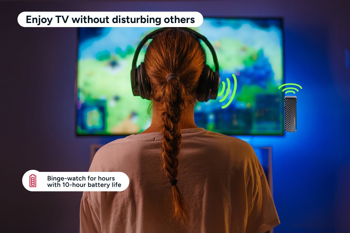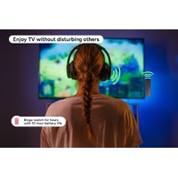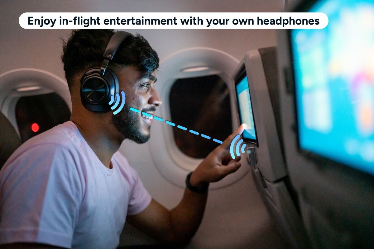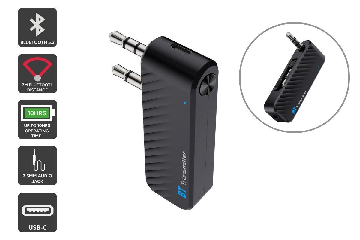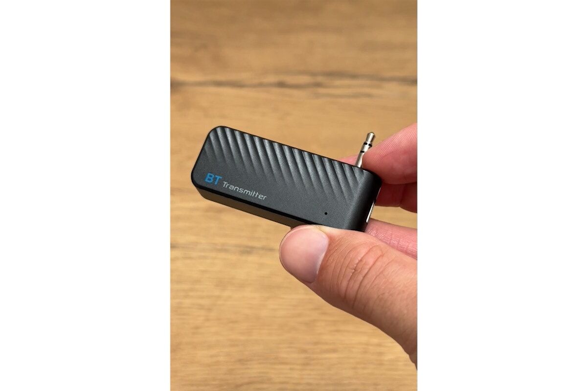 This compact audio transmitter wirelessly connects non-Bluetooth devices like TVs, in-flight entertainment, gym machines and gaming systems to your Bluetooth headphones, giving you the freedom to enjoy high-quality sound without cords or hassle.